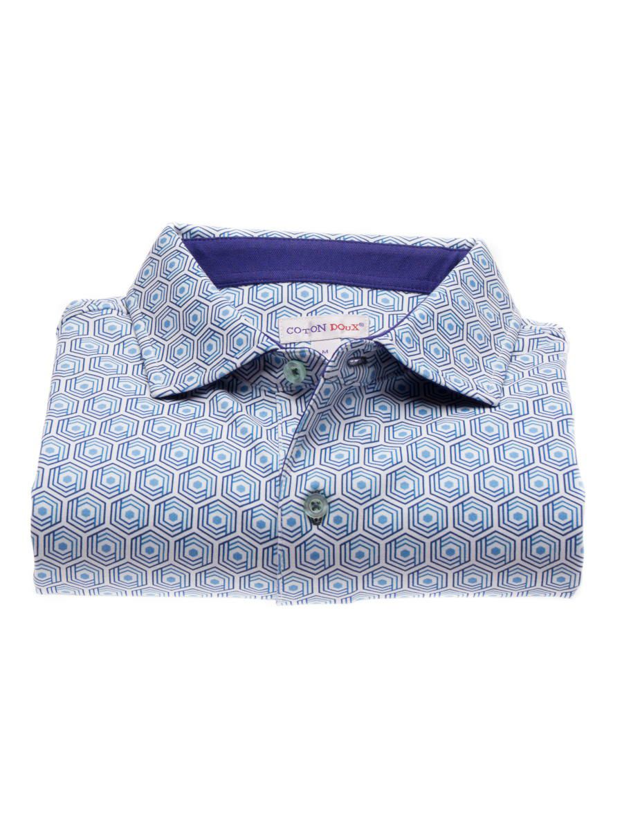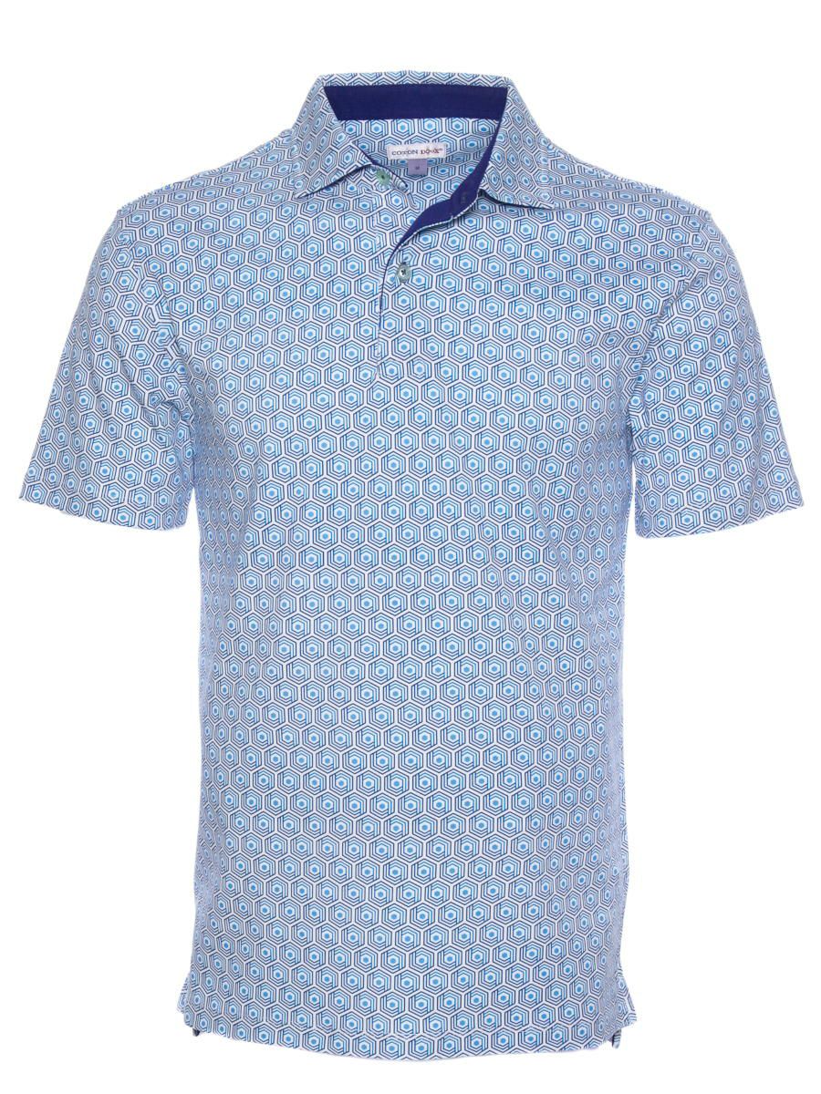 ポロシャツ メンズ 半袖 幾何学模様 ジオメトリック 柄シャツ レトロ ゴルフ タウン mp01d225bluegeo