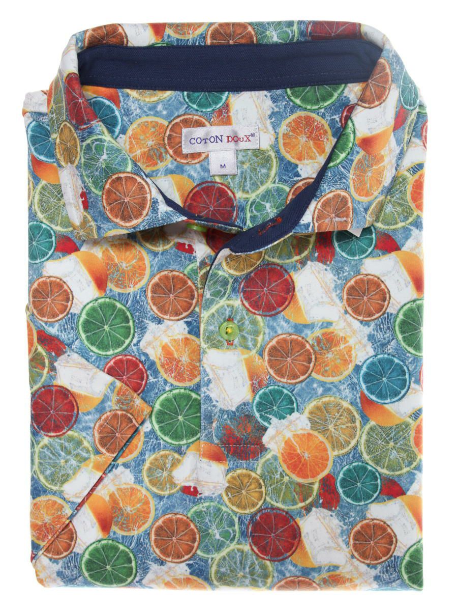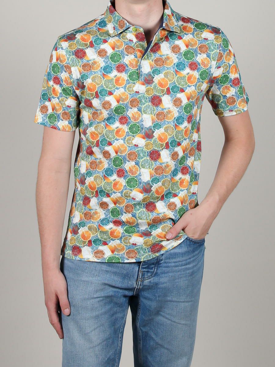 ポロシャツ メンズ 半袖 プリント 花柄 果物柄 柄シャツ タウン ゴルフ スポーツ mp22301