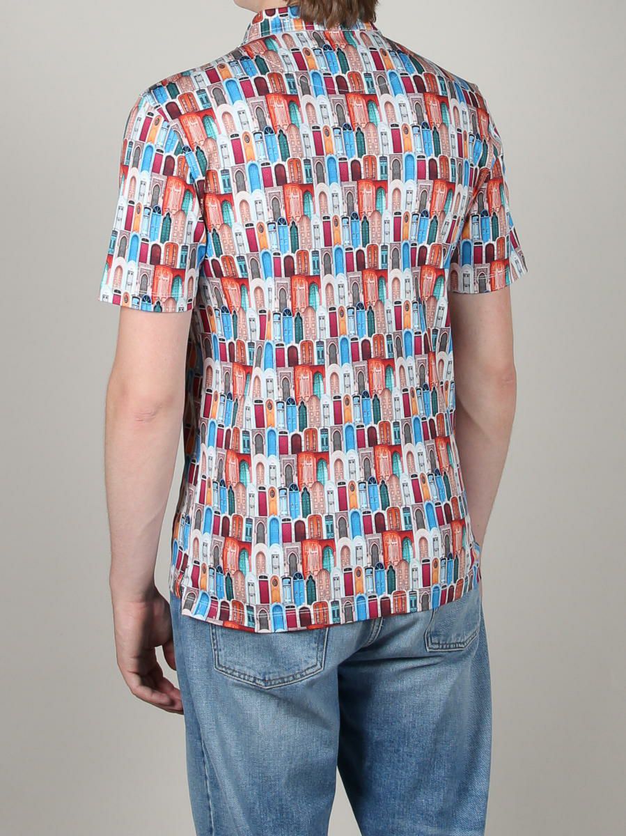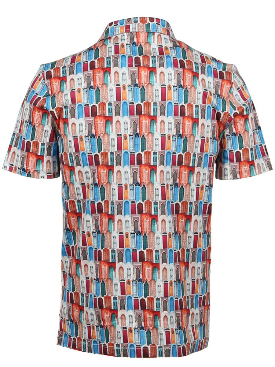 ポロシャツ メンズ 半袖 派手 プリント 柄シャツ ドア フランス 街並みユニーク デザイン mp22314