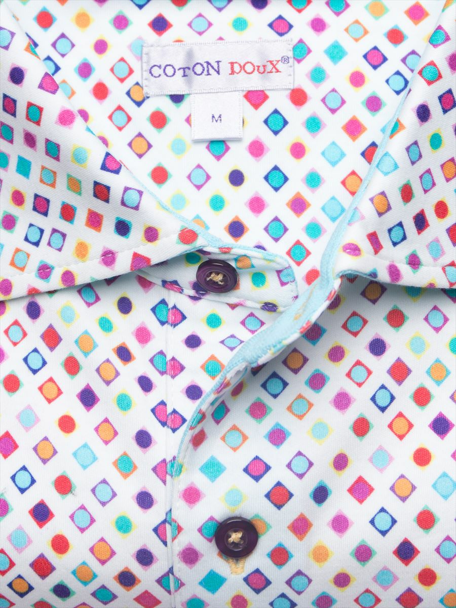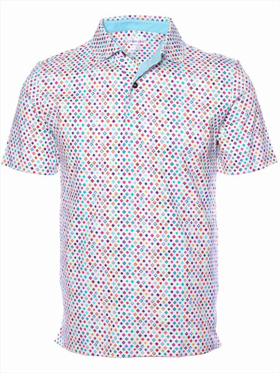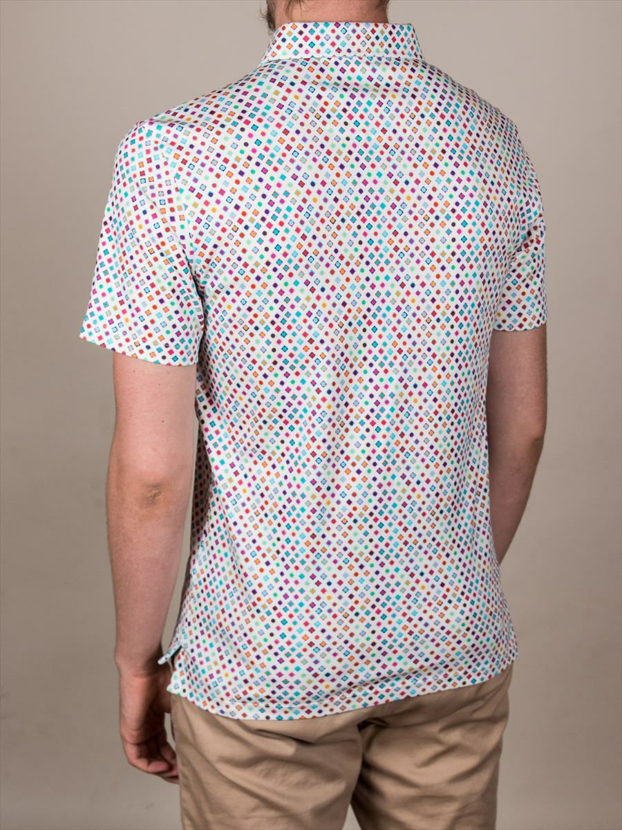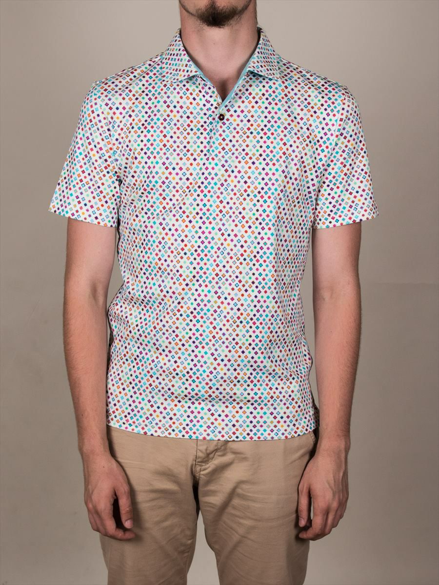 ポロシャツ 半袖 ドット スクエア プリント 柄シャツ コットン mp92d120squaredots