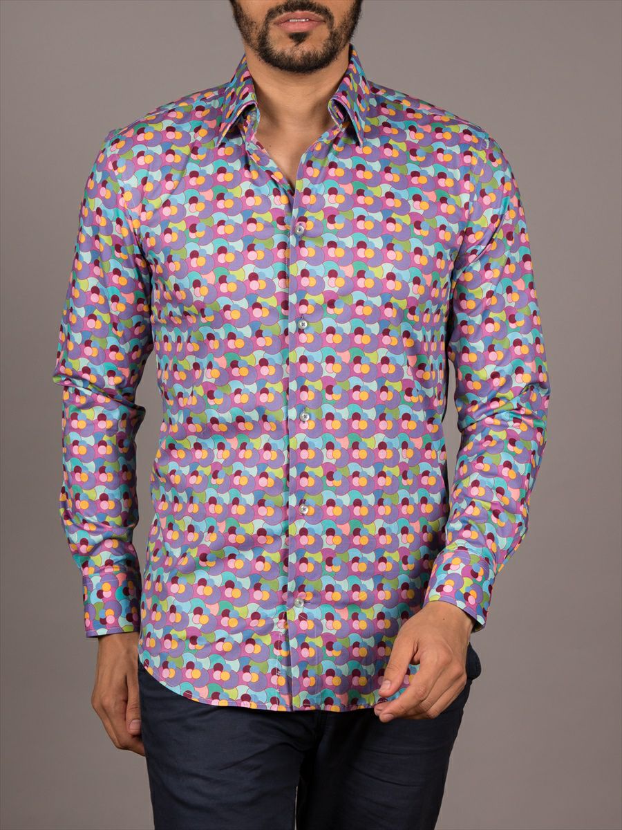 他の画像を見る メンズ シャツ 長袖 柄シャツ プリント デザインシャツ カジュアルシャツ ドレスシャツ ジオメトリック パープル ブルー m32ad2542 ¥ 18,700 税込 お気に入りに登録する