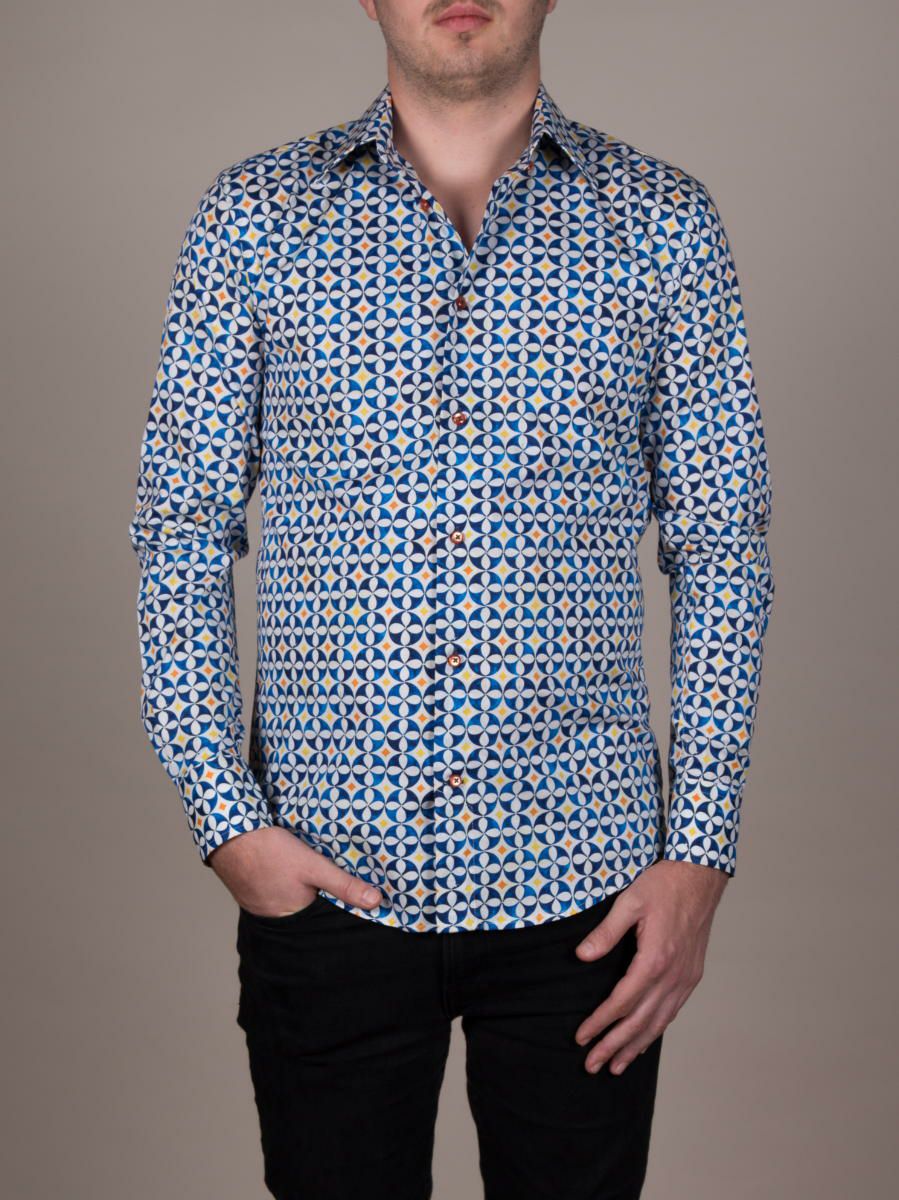 他の画像を見る メンズ シャツ 柄シャツ メンズ 長袖 フランス カジュアルシャツ デザインシャツ 大人 セレブ ファッション ブルー ジオメトリック プリント m51ad2862 ¥ 18,700 税込 お気に入りに登録する