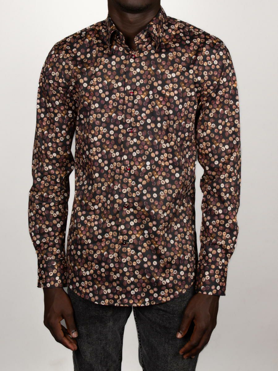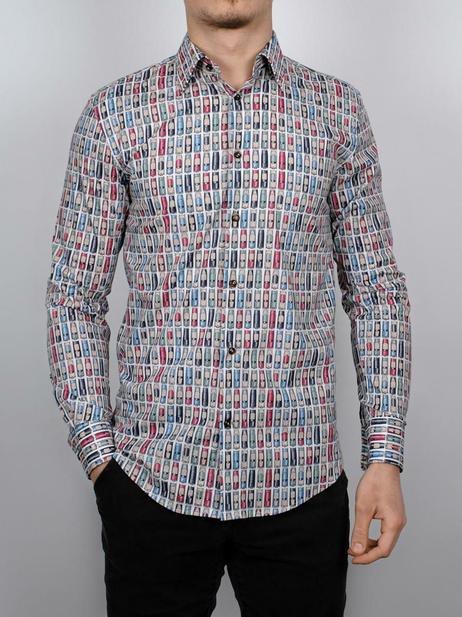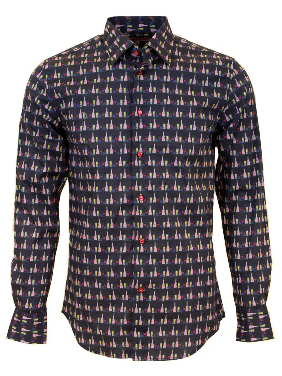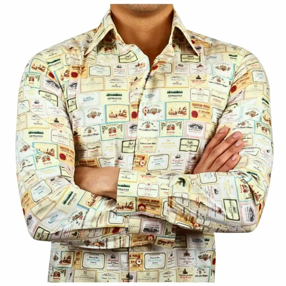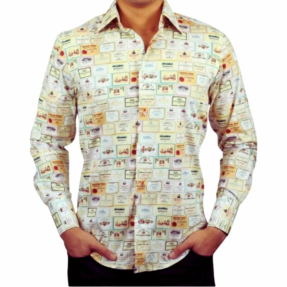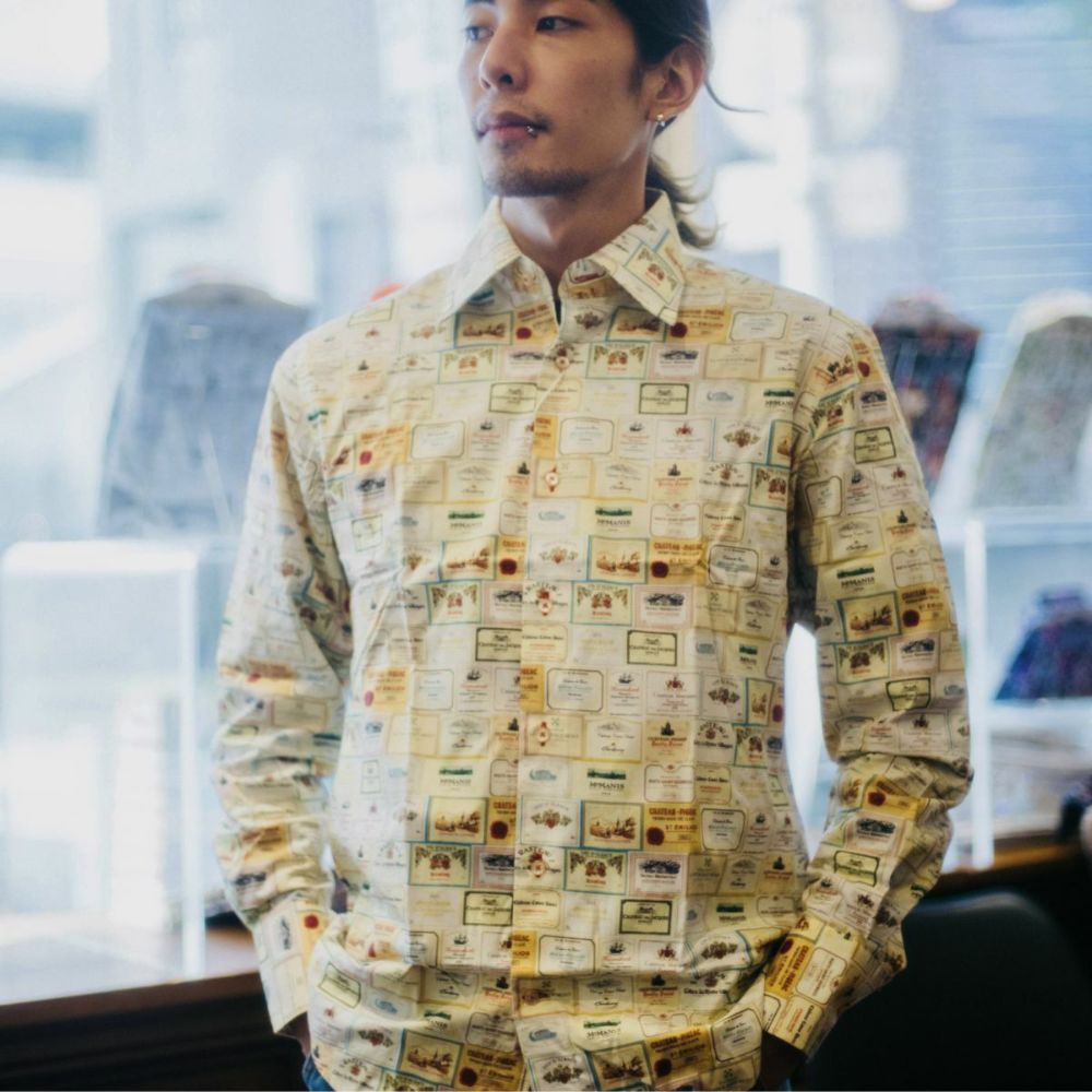 他の画像を見る 【限定特別仕様】 フランス ポプリン 綿素材 メンズ シャツ 柄シャツ 長袖 ワイン柄 ラベル レトロ スタイル 高めの襟 m-limited-wine ¥ 25,300 税込 お気に入りに登録する