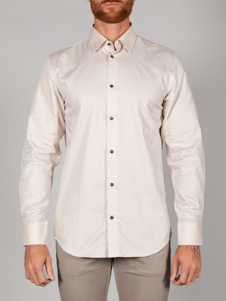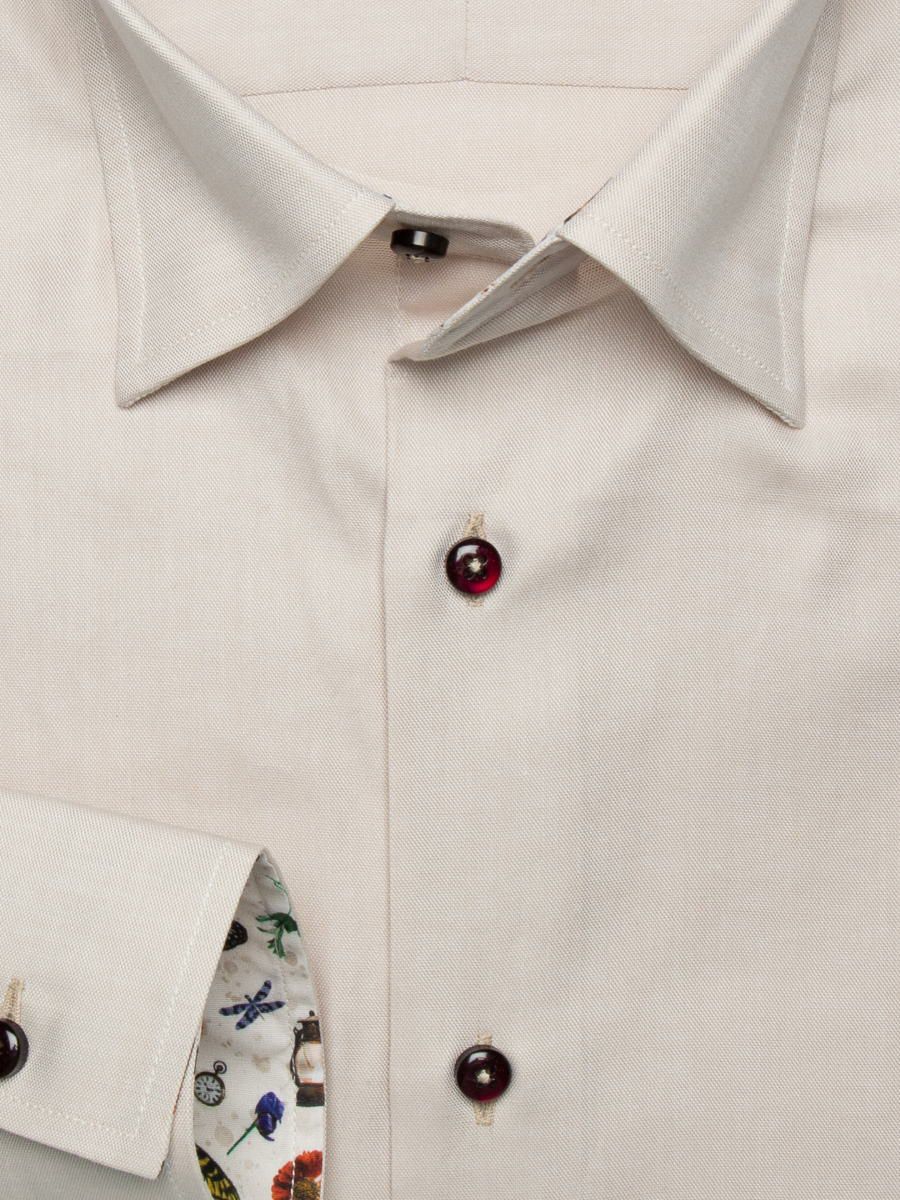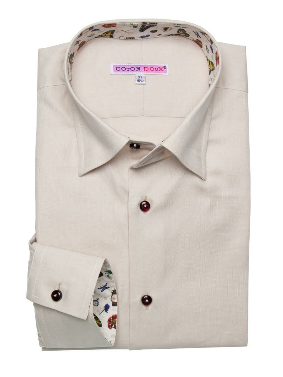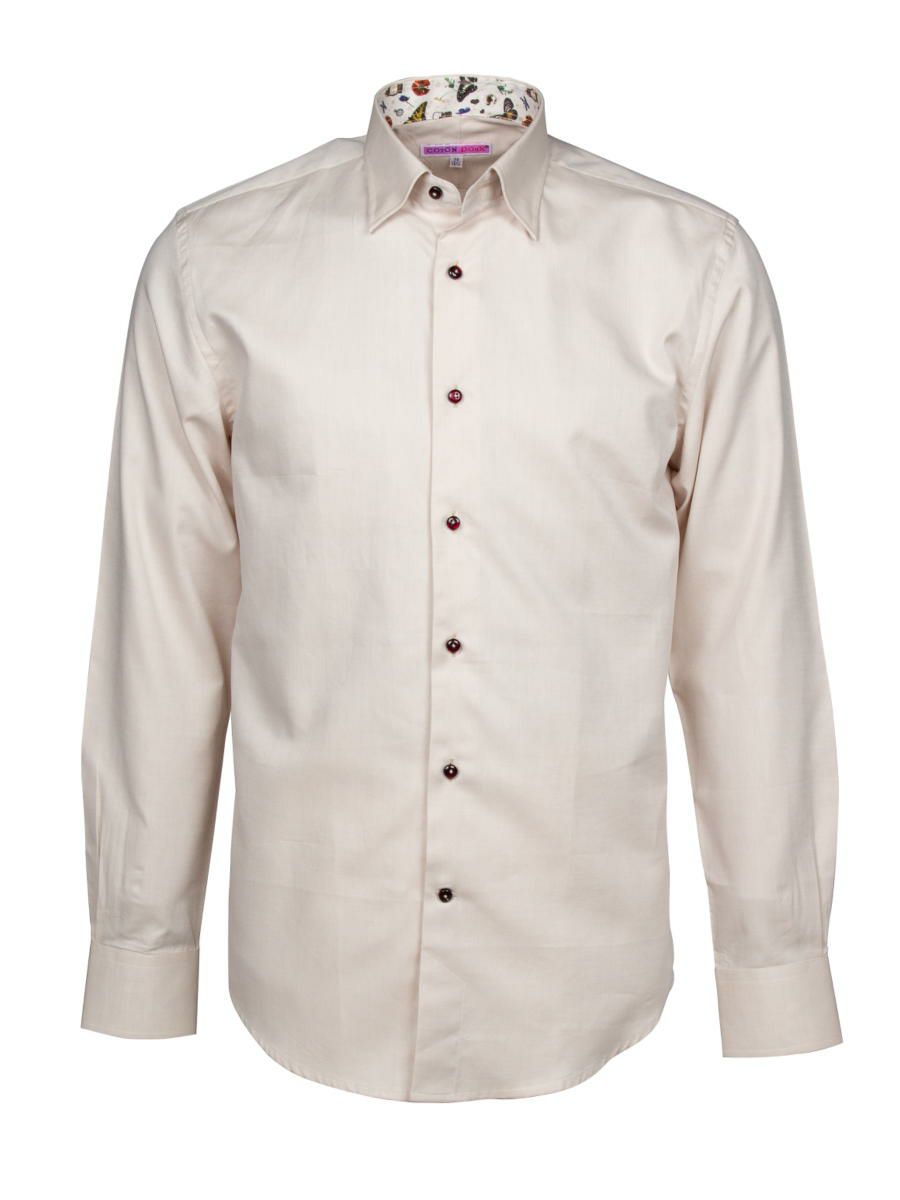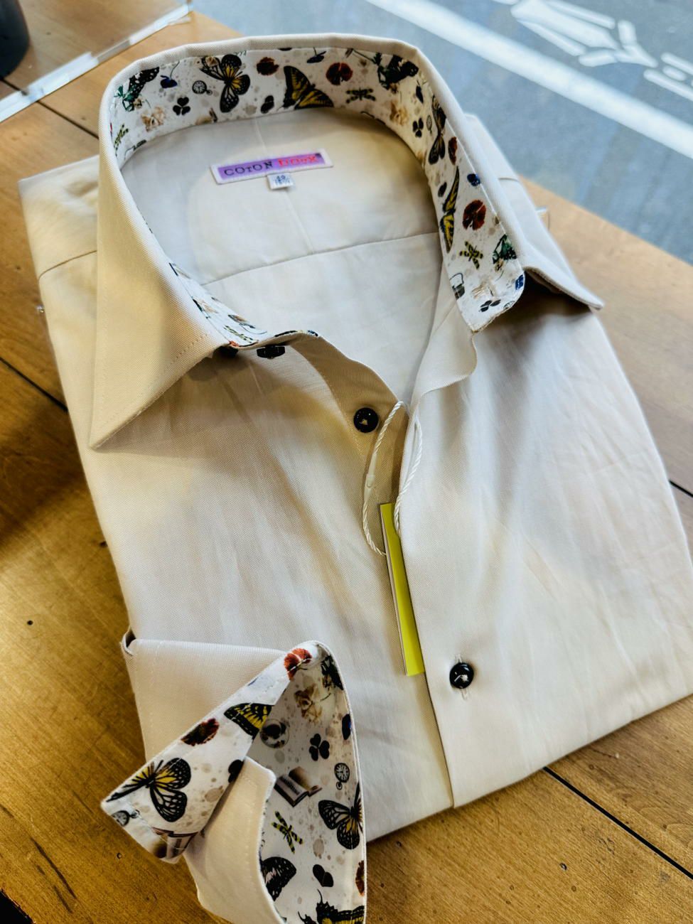 メンズ シャツ 長袖 無地 エジプト綿 コットン100% 裏地プリント デザインシャツ カジュアル ドレスシャツ ベージュ m42td2206