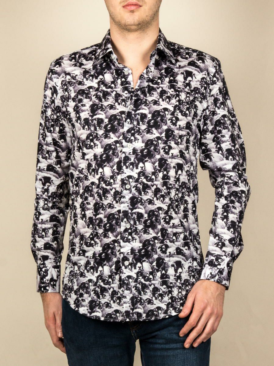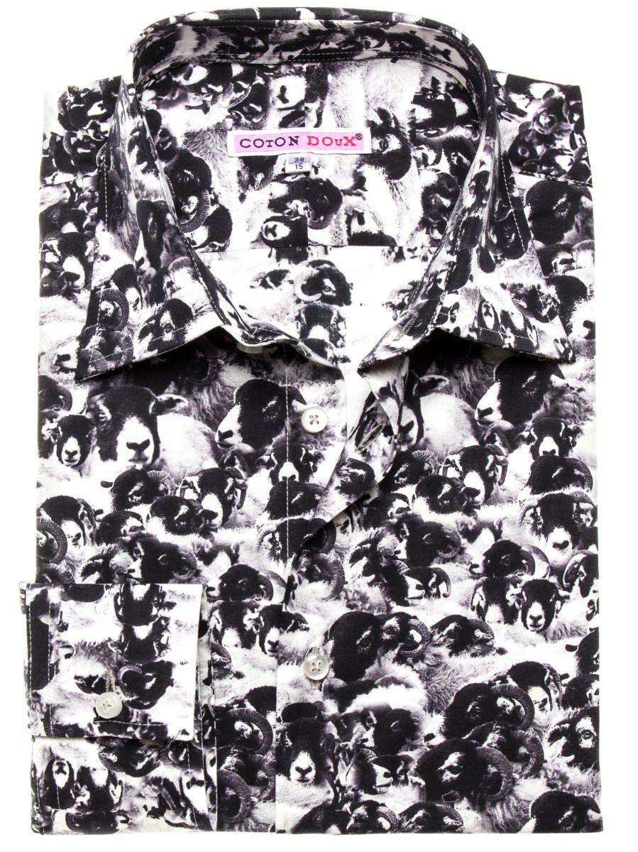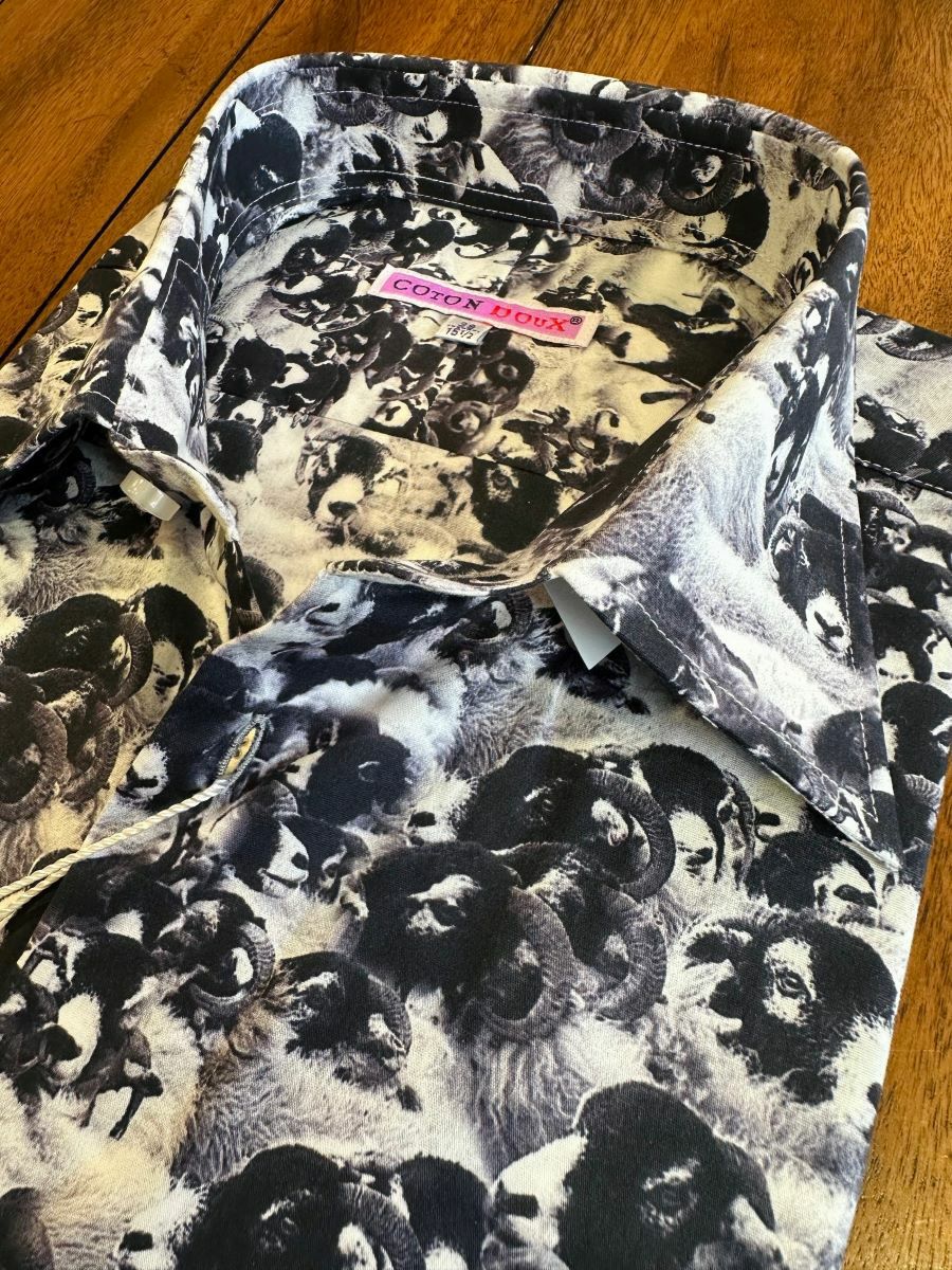 メンズシャツ アニマル柄シャツ モノトーン 羊 シック m01ad1868sheep