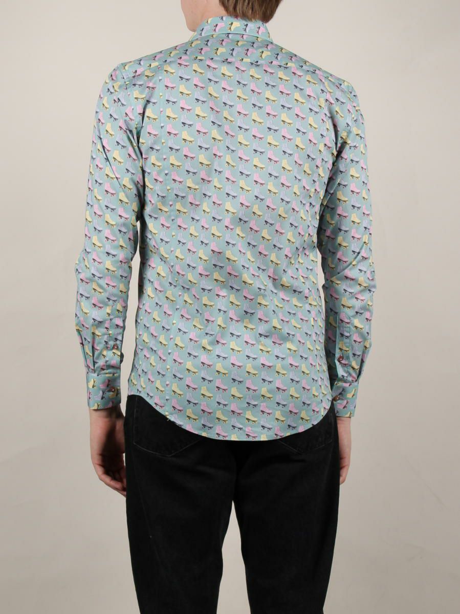 メンズ シャツ 紳士 柄シャツ ローラースケート かわいい イラスト アート プリント m22ad2315