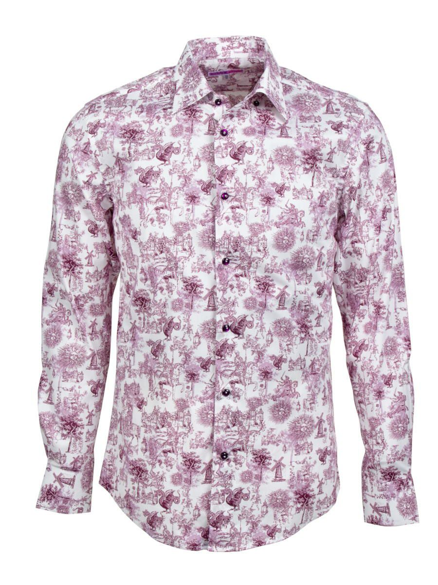 シャツ メンズ 柄シャツ 長袖 レトロ プリント デザインシャツ カジュアルシャツ ドレスシャツ ヴィンテージ パープル m32ad2525