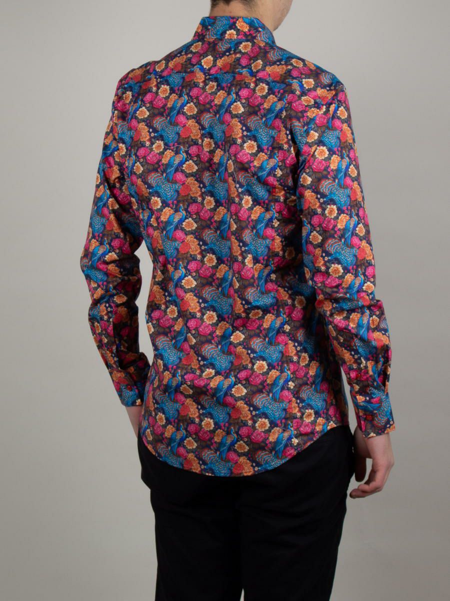 エレガントで美しいシャツです!孔雀が本当に綺麗で個性的で大満足です 羽根を広げているデザインも目を惹き、このシャツを着て会う友人との会話も弾みそうで、今からとても楽しみです! 本当に素敵なシャツなので、モード系メンズパンツと合わせてお出掛けしたいと思います!素晴らしいシャツを、いつも本当に有難う御座います!