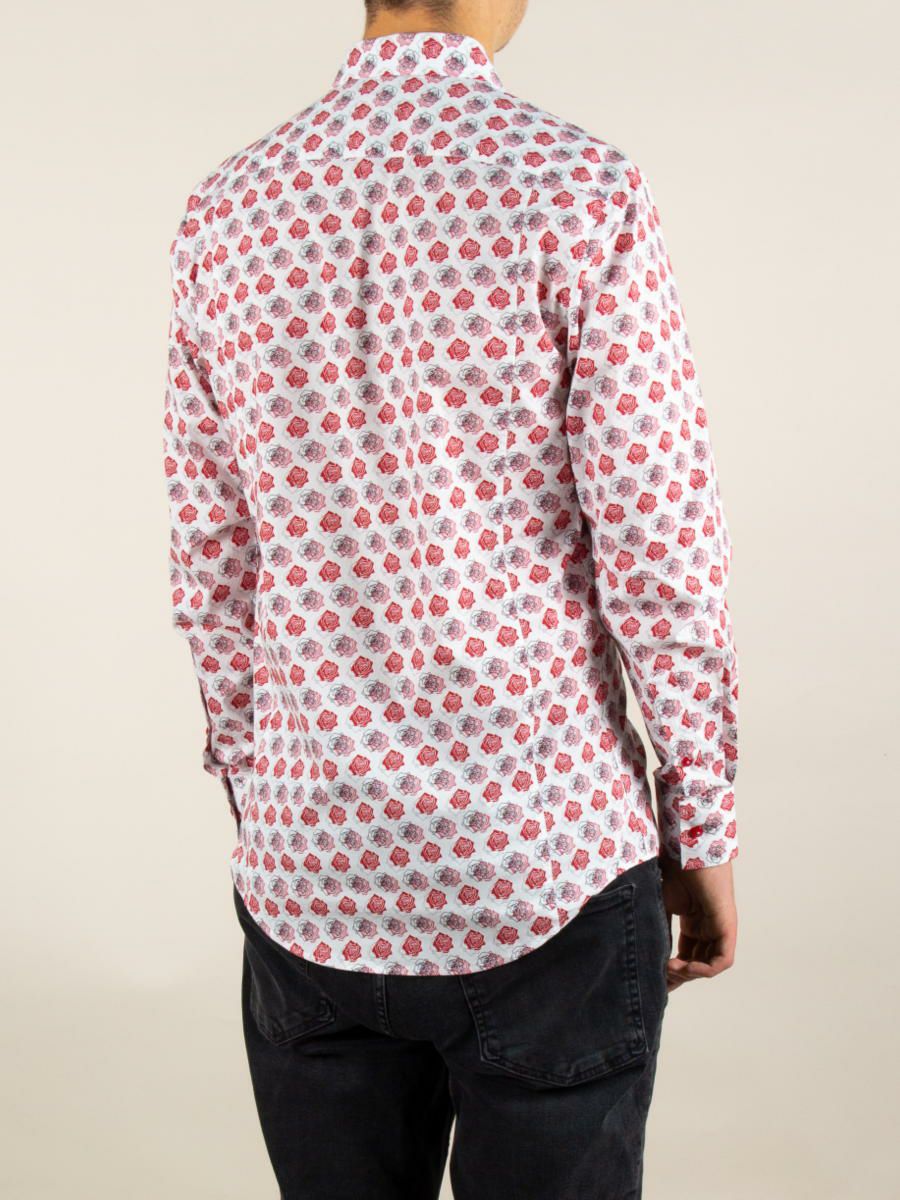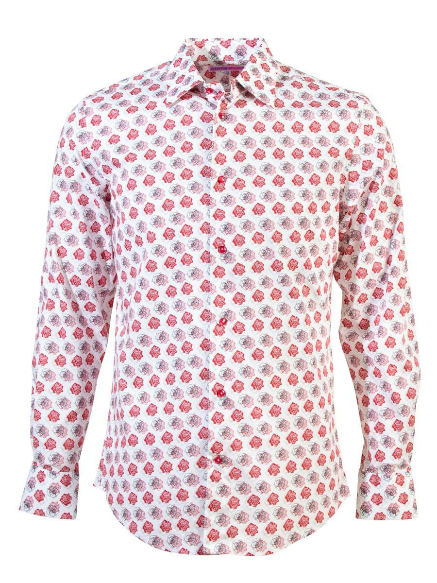 メンズ シャツ 長袖 花柄 柄シャツ プリント デザインシャツ カジュアルシャツ ドレスシャツ バラ 薔薇 m32ad2558