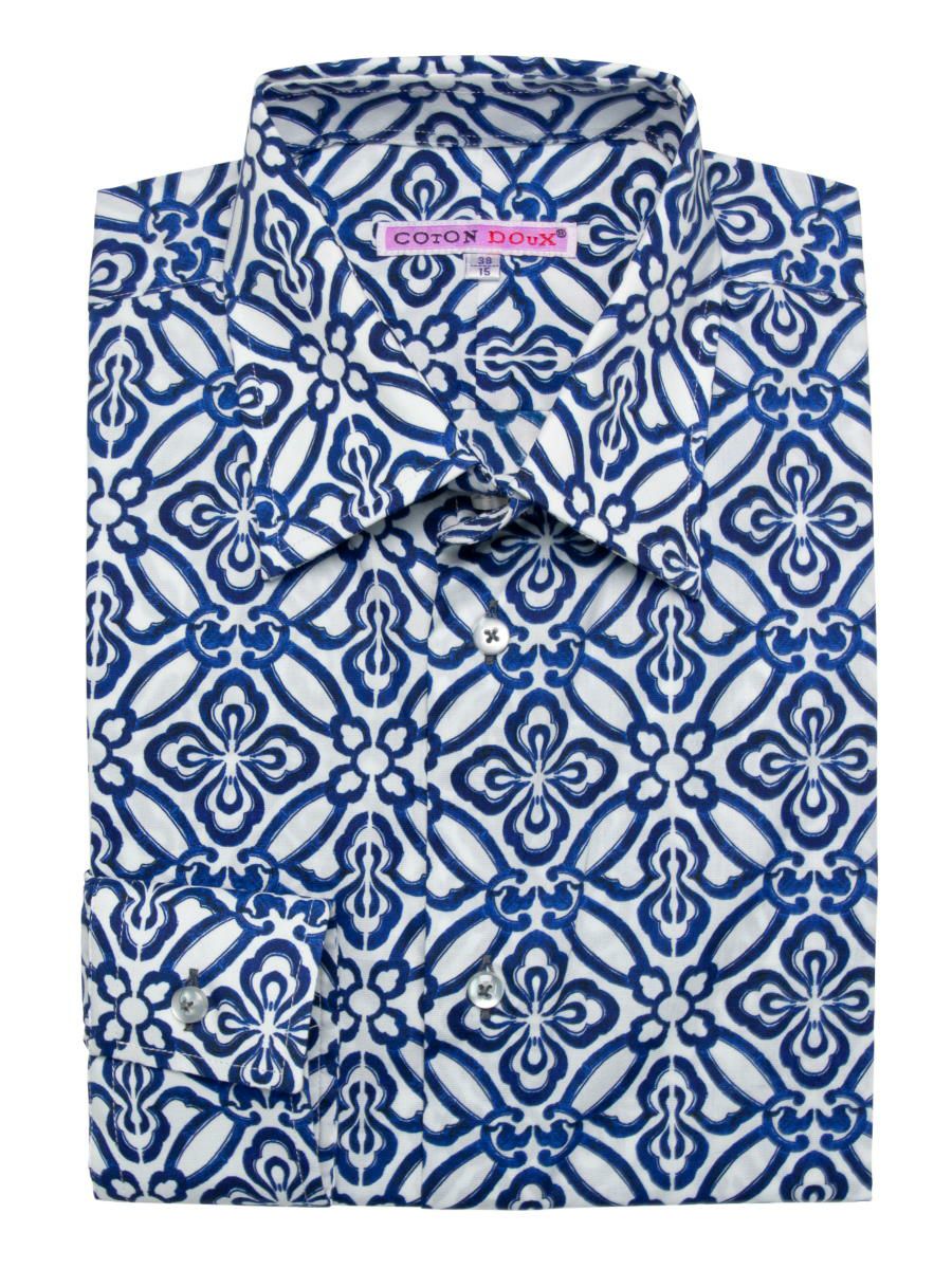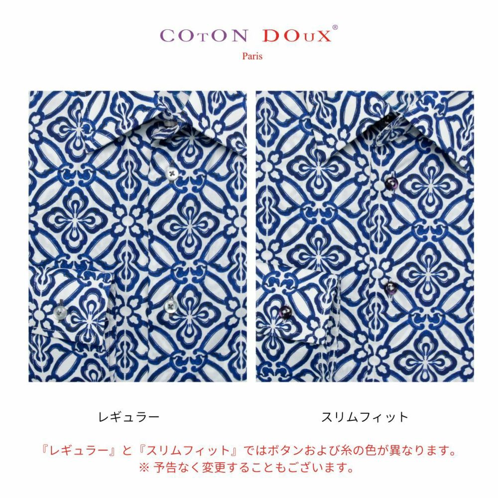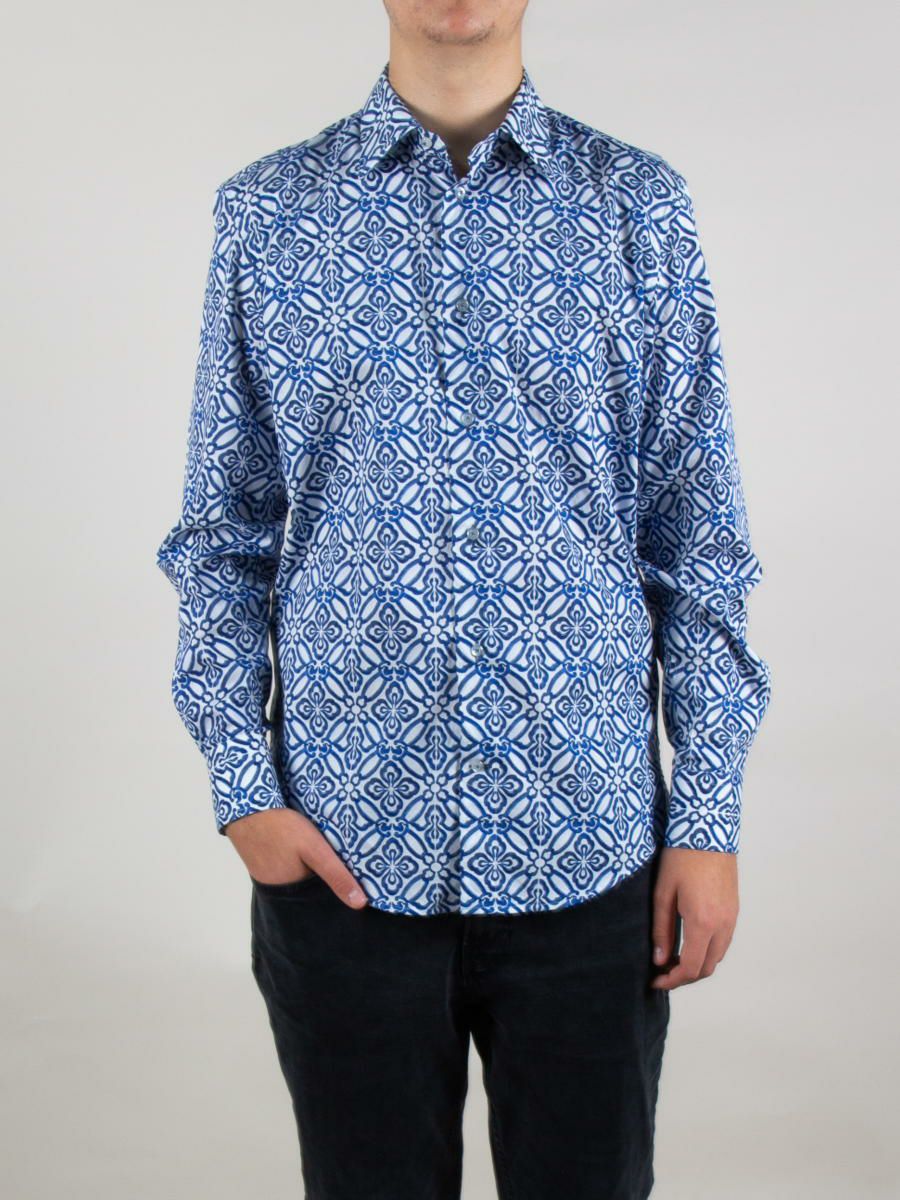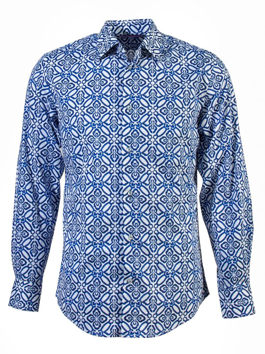 メンズ シャツ 長袖 柄シャツ プリント デザインシャツ カジュアルシャツ ドレスシャツ アズレホ ブルーシャツ m32ad2594