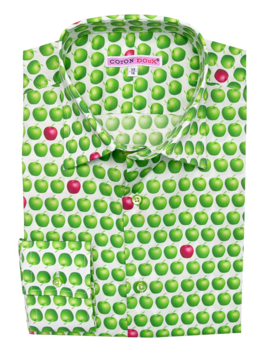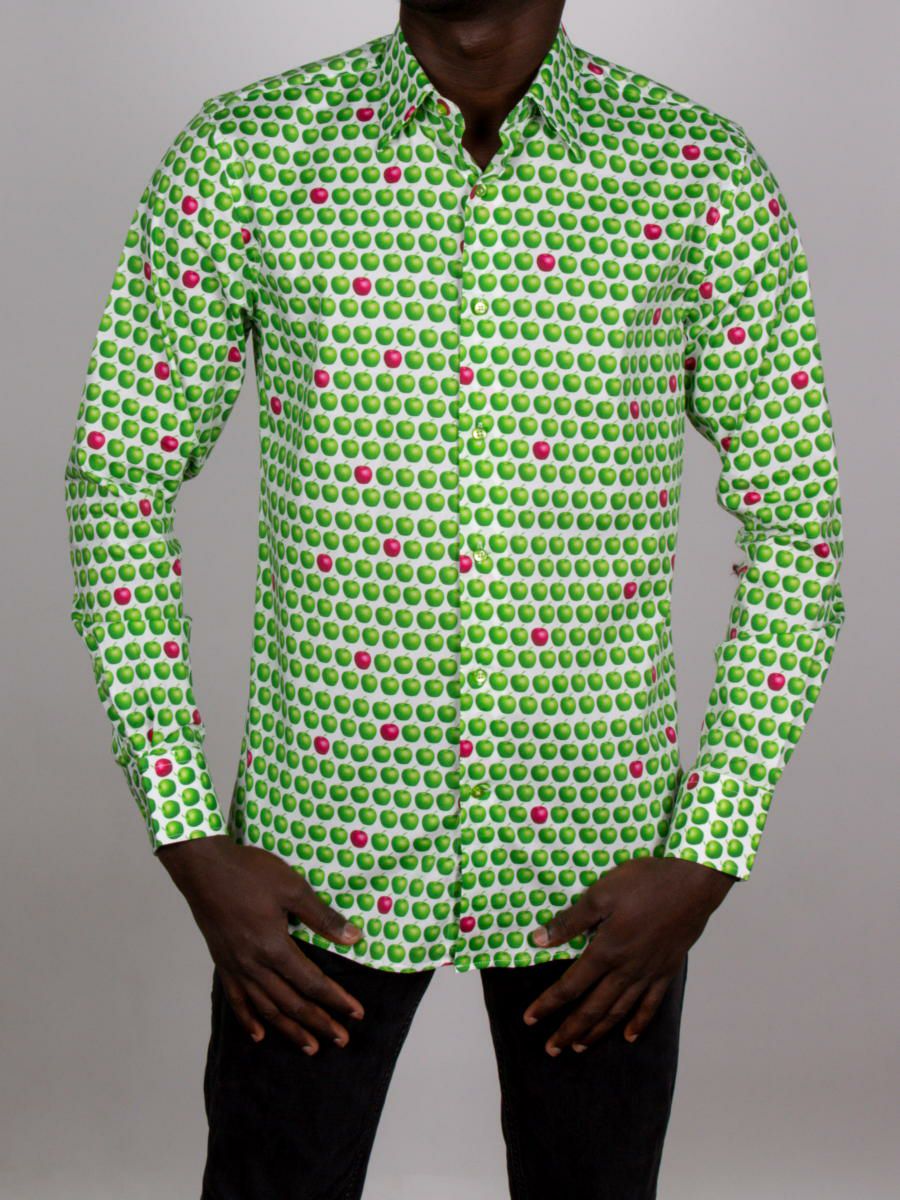 メンズ シャツ 長袖 柄シャツ レトロ プリント デザインシャツ カジュアルシャツ ドレスシャツ 青りんご 赤リンゴ 果物柄 m41ad2641