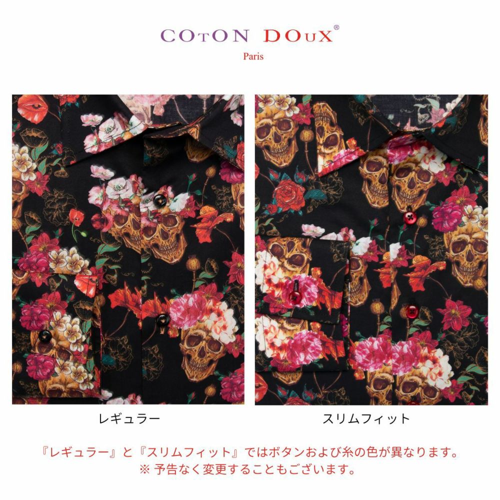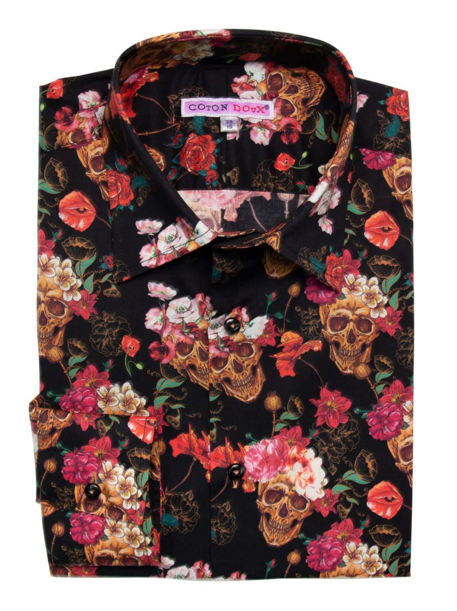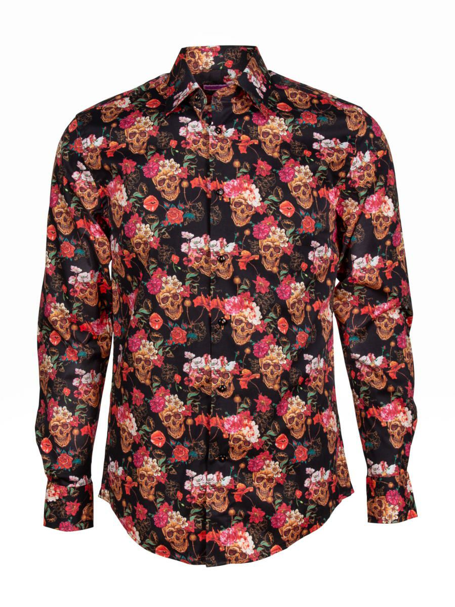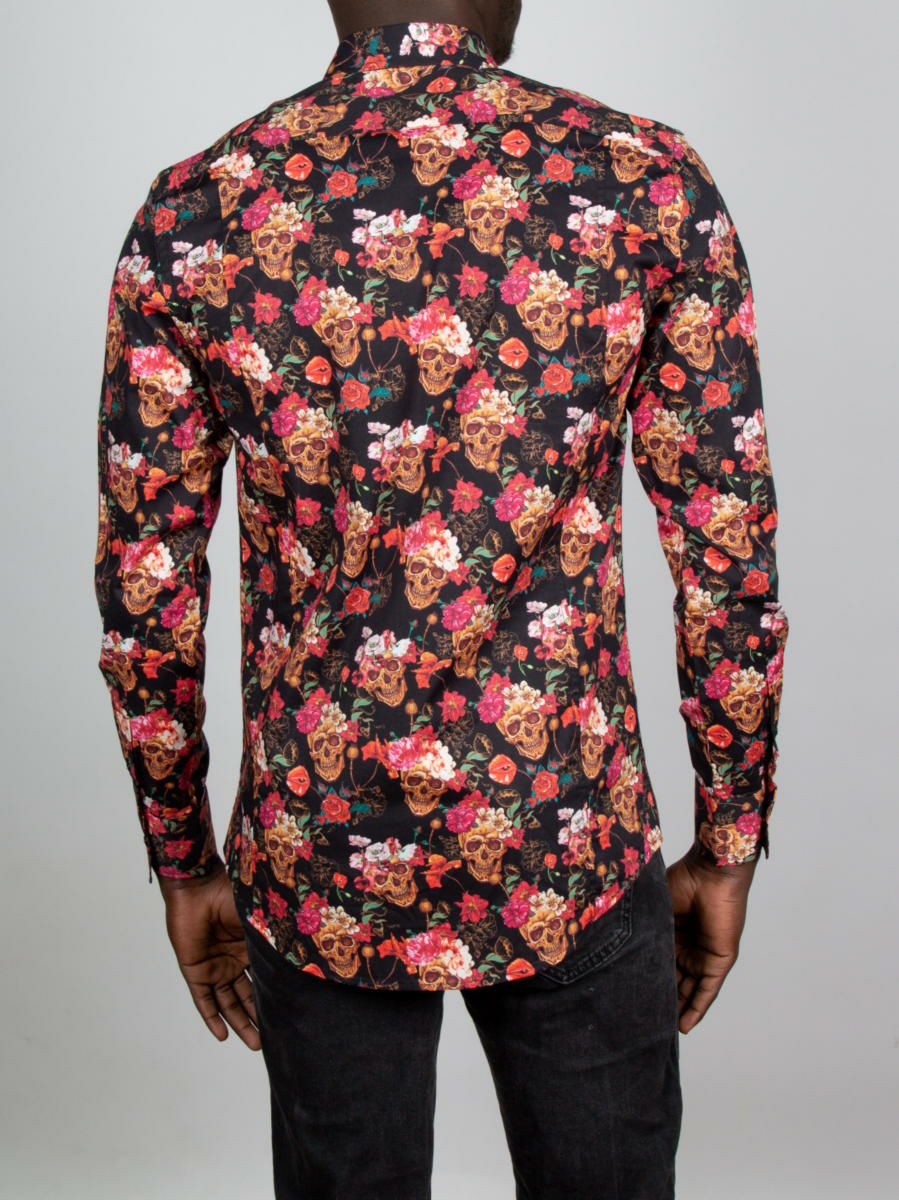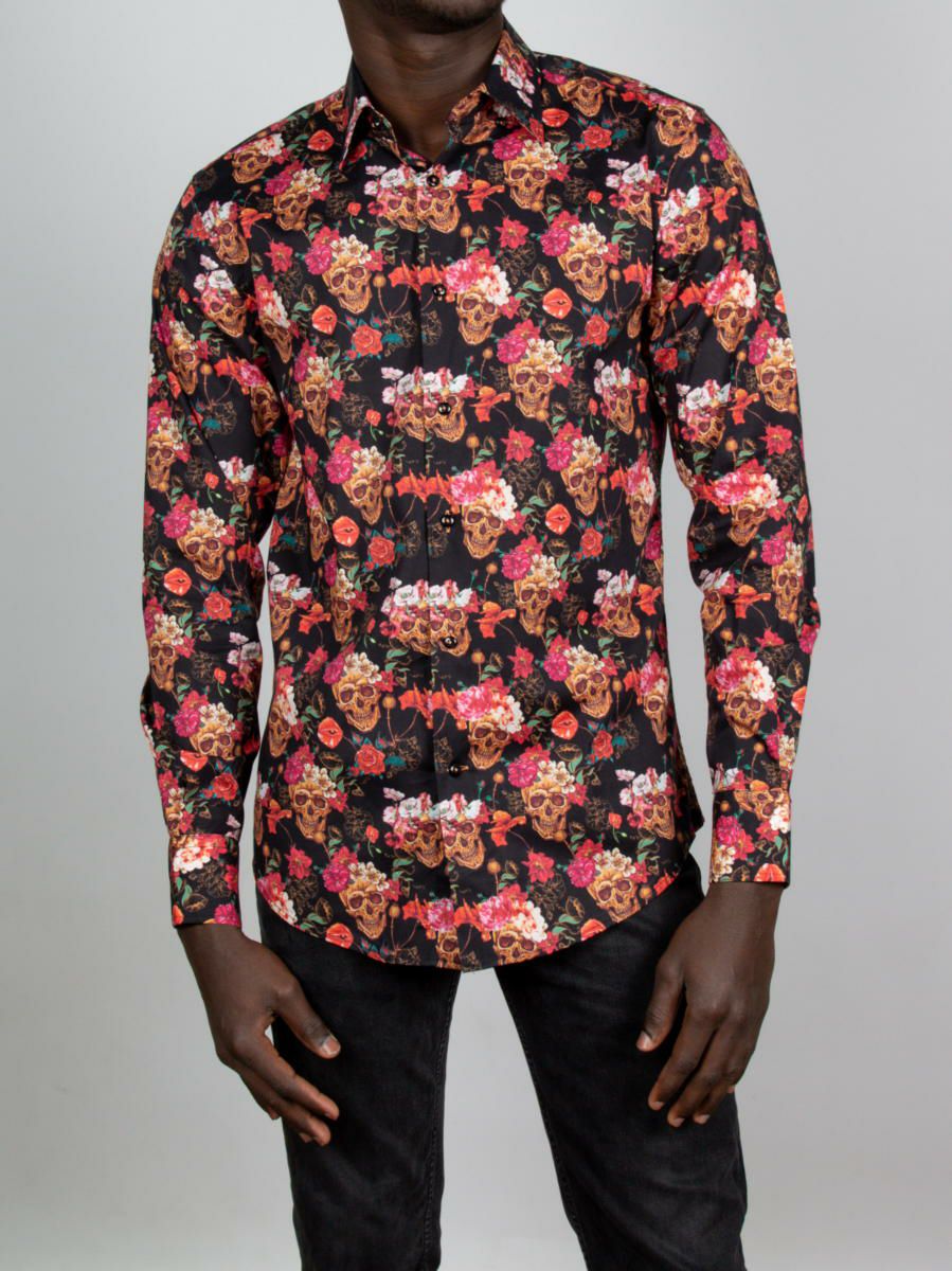 メンズ シャツ 長袖 スカル 花柄 柄シャツ プリント デザインシャツ カジュアルシャツ ドレスシャツ ドクロ m41ad2648