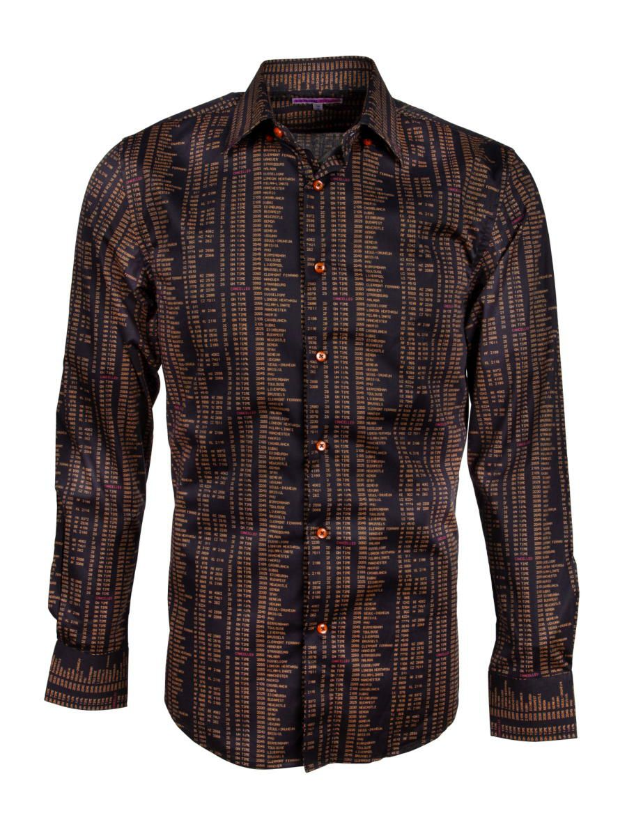 メンズ シャツ 長袖 柄シャツ プリント デザインシャツ カジュアルシャツ ドレスシャツ フライトスケジュール m41ad2651