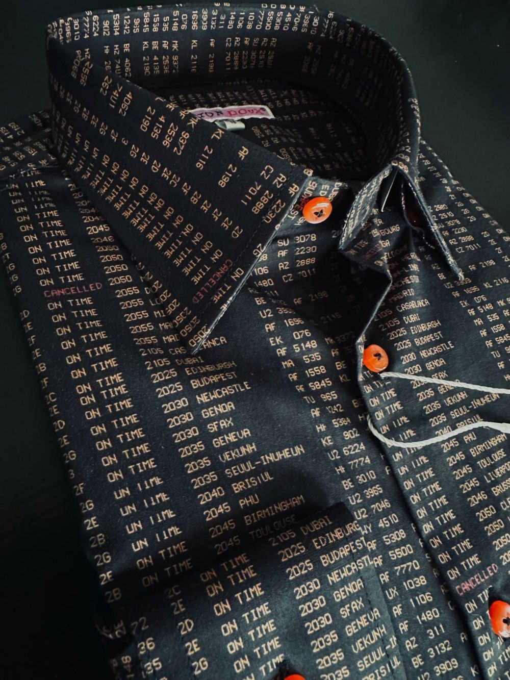 大人っぽく落ち着いた感じで、カッコ良くて、大変気に入ってます フライトスケジュールの文字のデザインが、遊び心があり、 このシャツを着ている時の、周りの友人との会話が弾むなぁーと楽しみです いつもセンスの光るステキなシャツを有難う御座います!