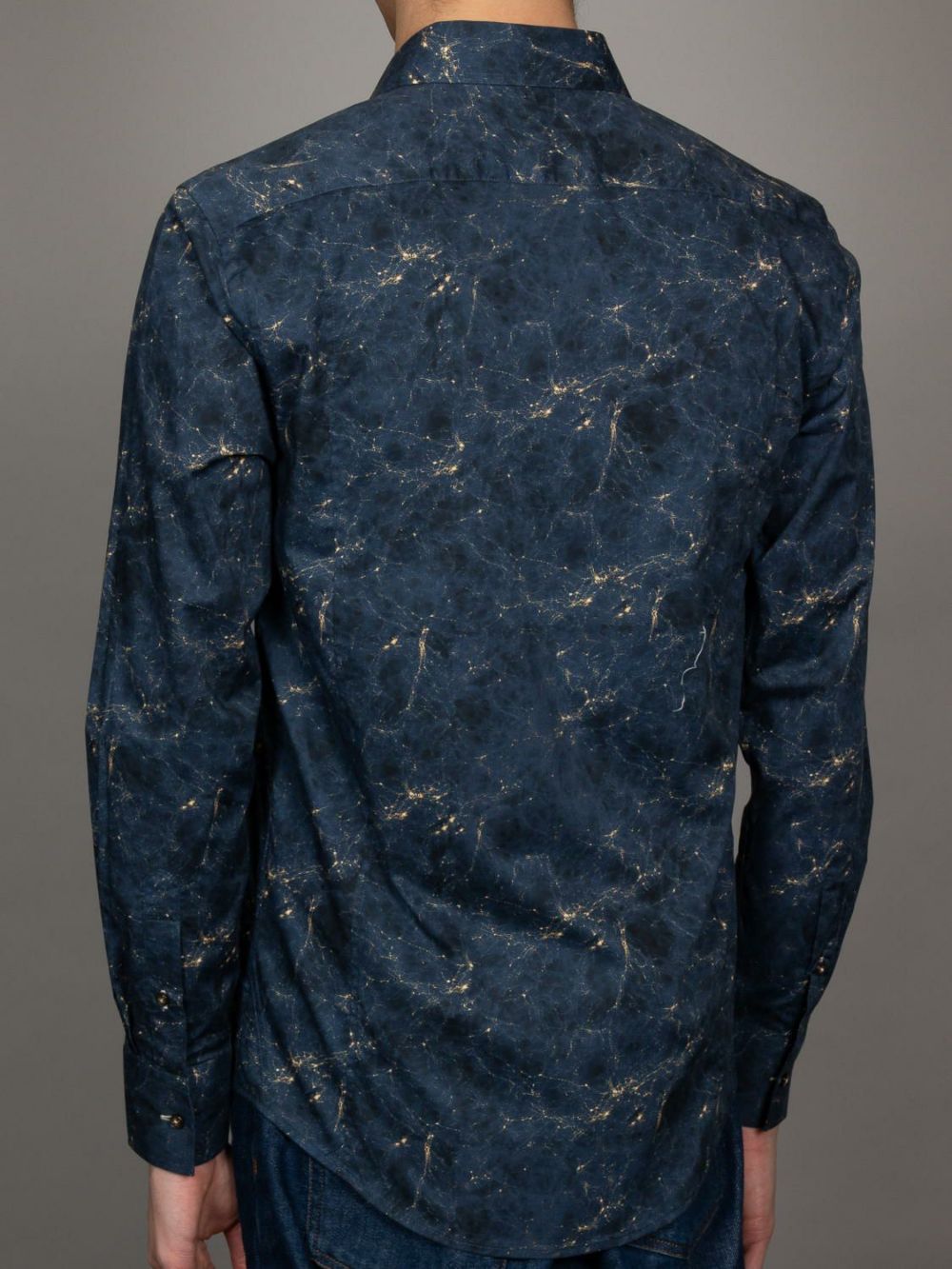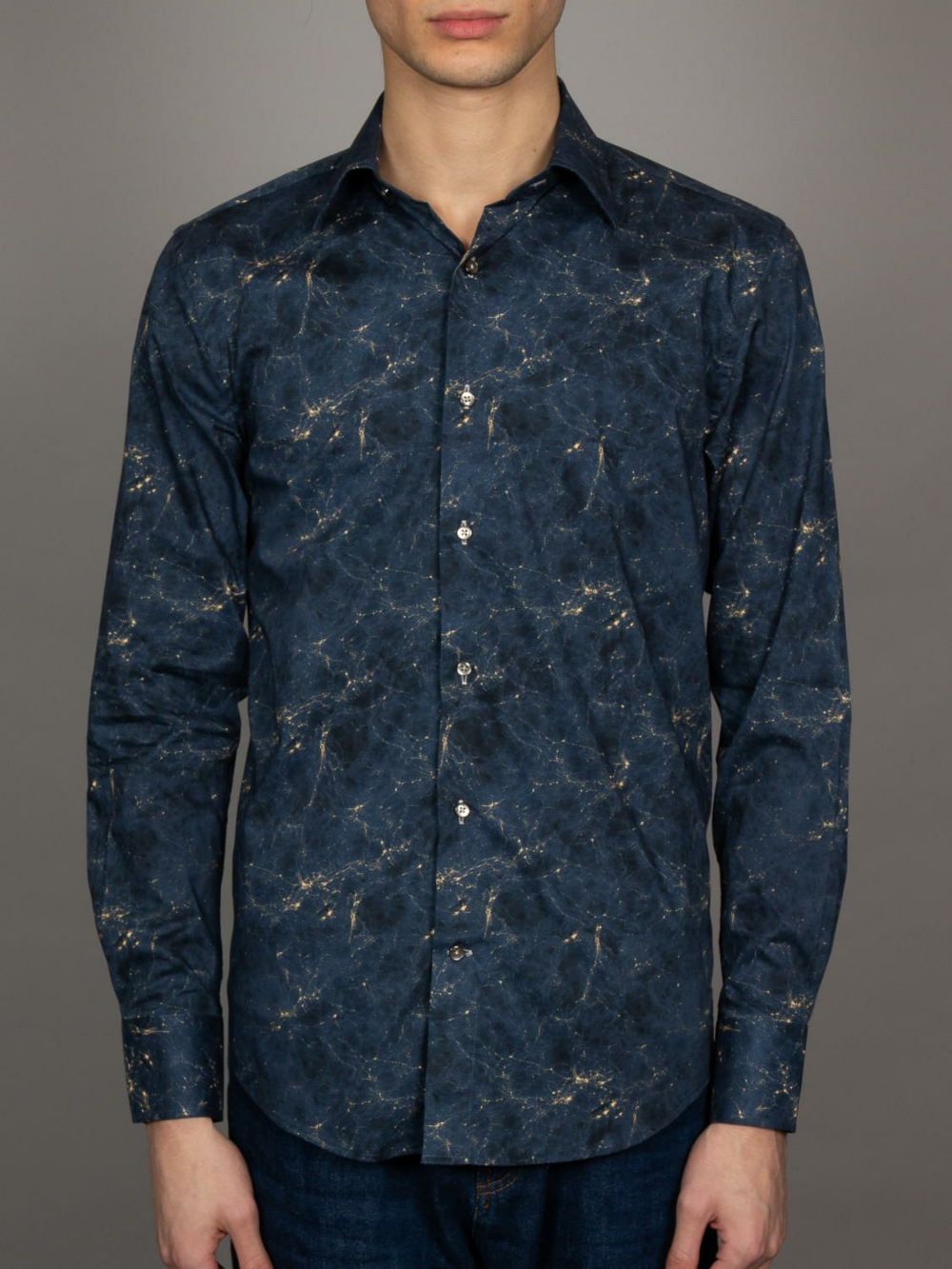 メンズ シャツ 柄シャツ メンズ 長袖 フランス カジュアルシャツ ドレスシャツ 黒 ブラック ダーク ブルー プリント お洒落 おしゃれ コットン 綿 m51ad2880