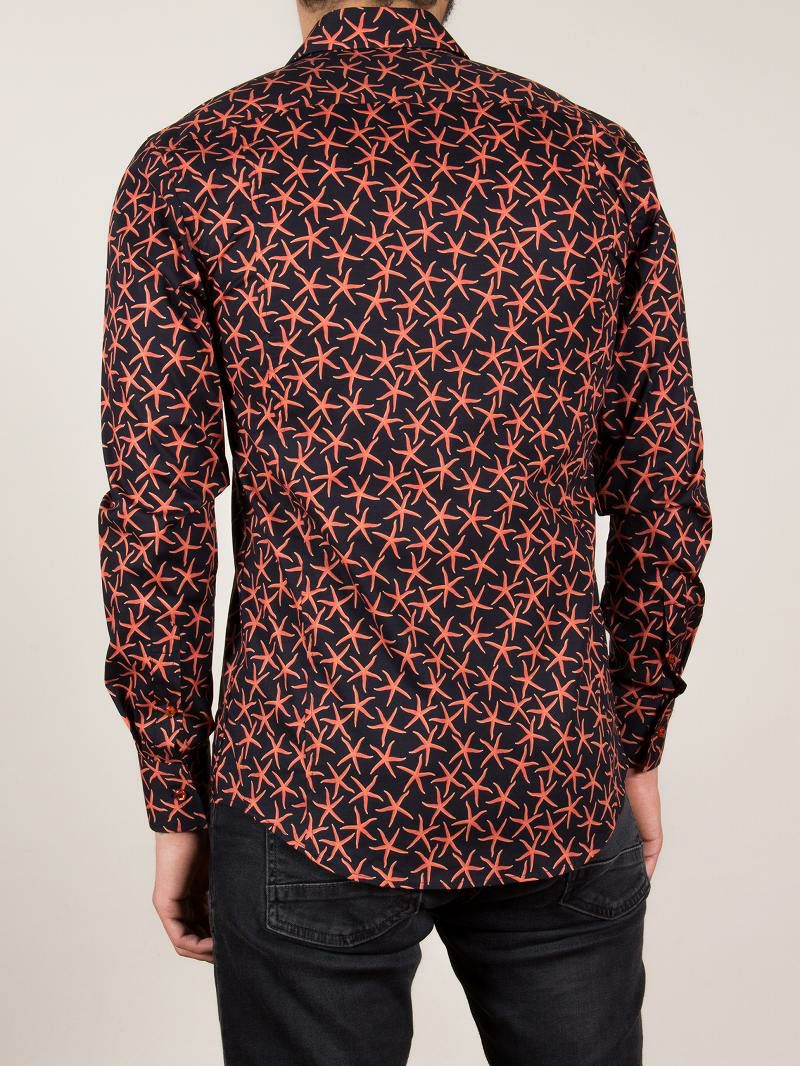 メンズ シャツ ブラック オレンジ カラー プリント m81ad1486