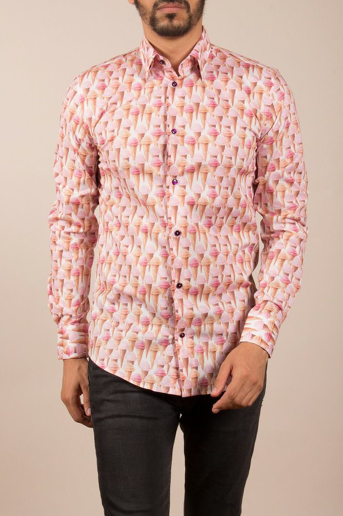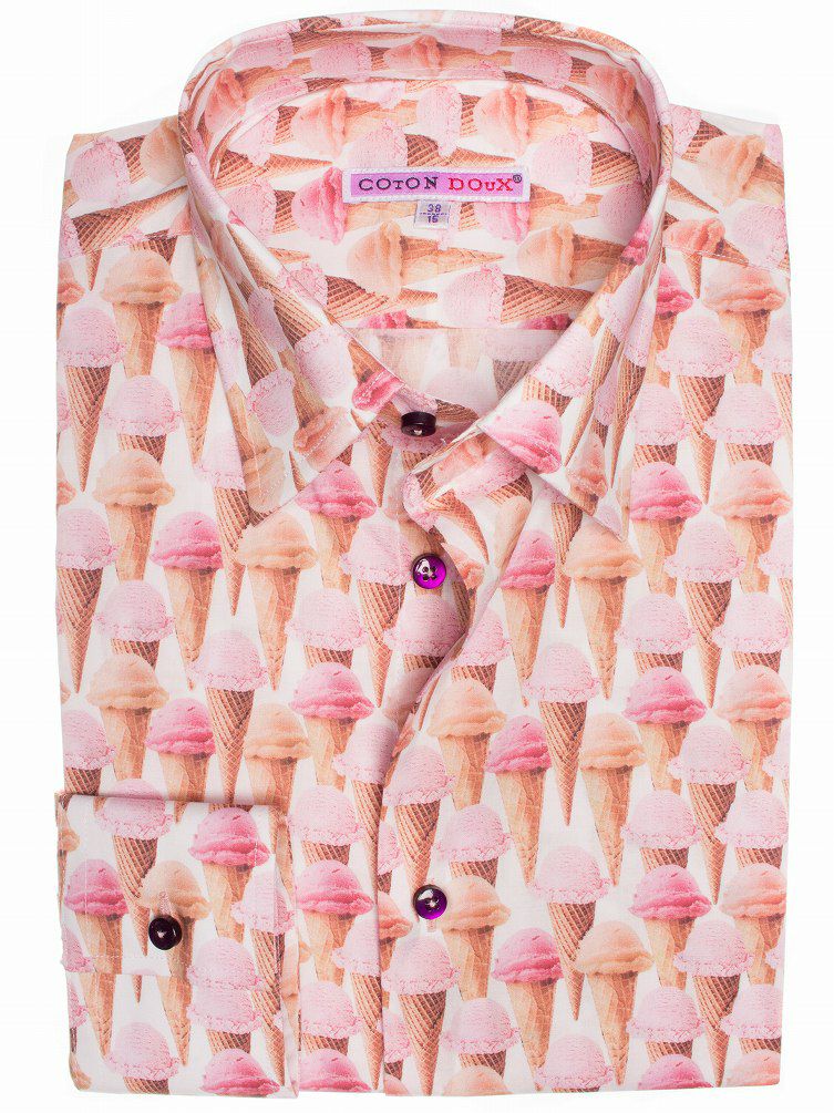 みんな大好き、アイスクリームのプリントシャツ。オトコっぽい人が着るカワイイ柄シャツが好印象になる法則。