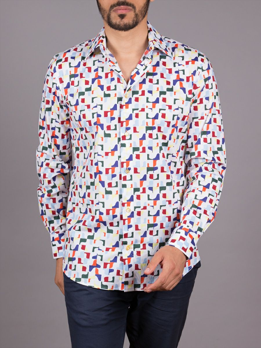 メンズ シャツ 柄シャツ プリント ポップアート m92ad1740shapes2