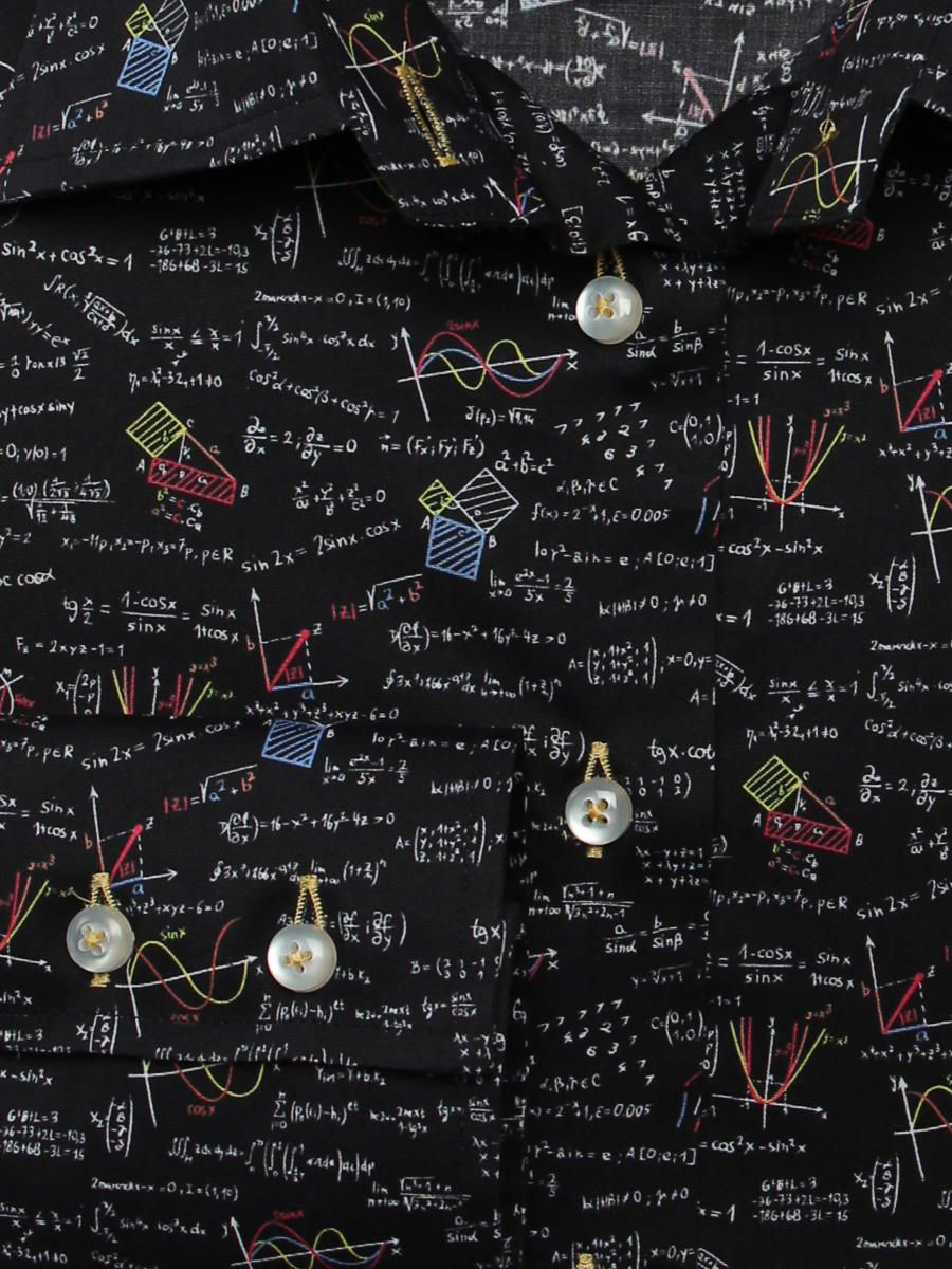 4. レディースシャツ 長袖 柄シャツ プリント デザインシャツ カジュアルシャツ 数学 黒板 l31ad2458