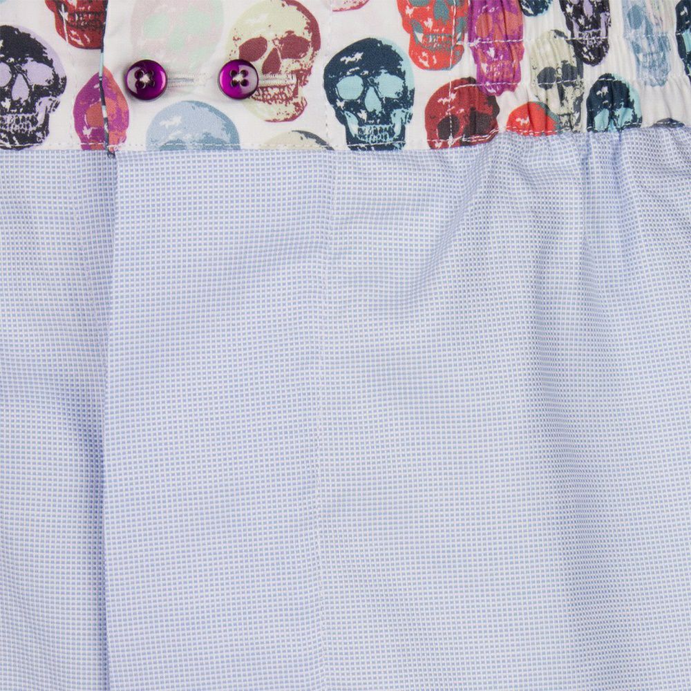 カラフルでポップなドクロ柄。生地のブルーも爽やかです。