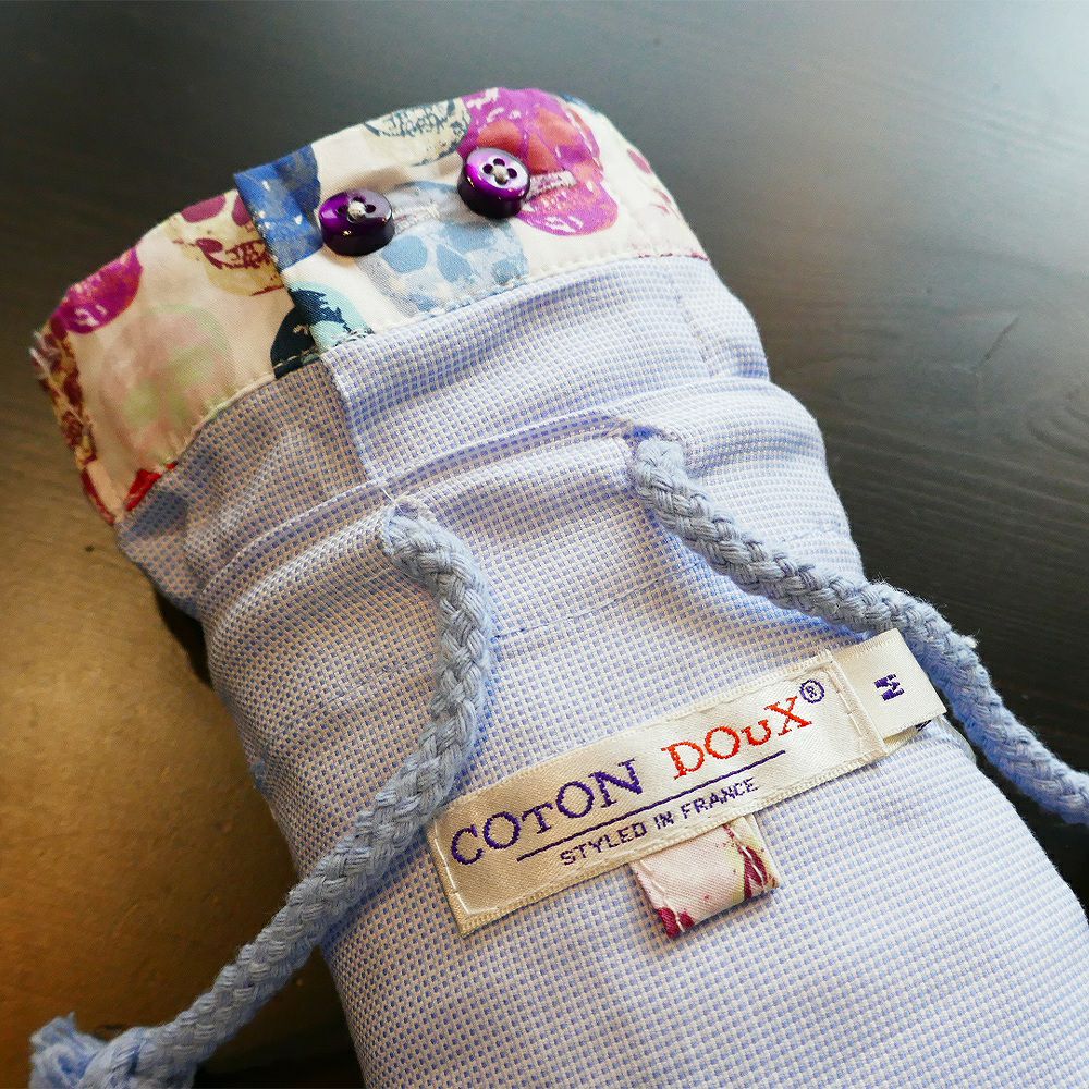 アンダーウエアだってかわいくてカッコいいほうがいい。CotonDouxのクラシカルシャツに使う生地とシャツ素材(エジプト綿100%)で作りました。高級感のある美しいテクスチャーとサラッとした肌触りがとても心地よいトランクスです。CotonDouxはファブリックデザインやフォルムだけではなく、フロントに二つ並んだかわいいボタンやボタンホールの色、生地の切り替えなど、魅せるディテールの表現豊かにに仕上げました。可愛い巾着袋入りの茶目っ気たっぷりのトランクスはプレゼントにもピッタリ。カラフルでお洒落なギフトは特別な日の演出をさらに盛り上げてくれます。