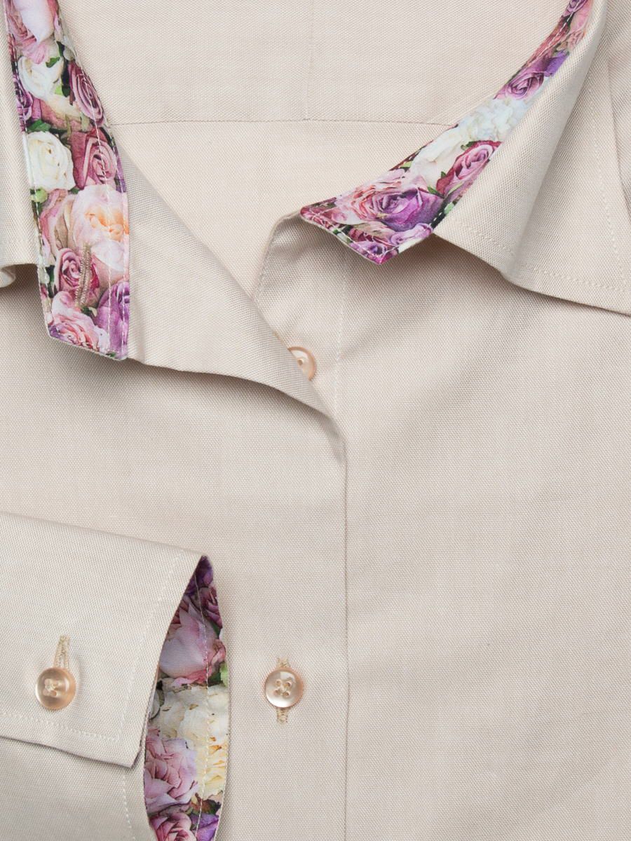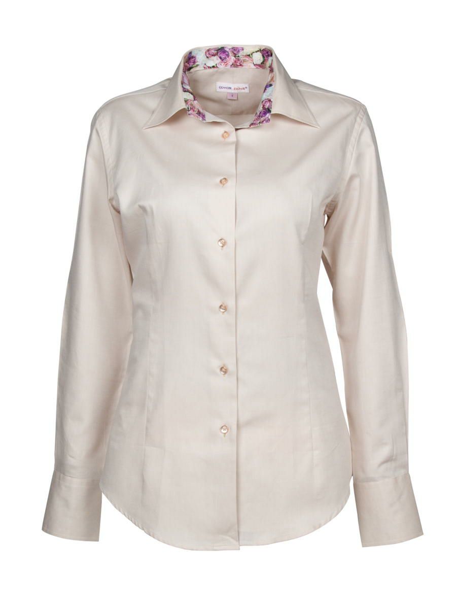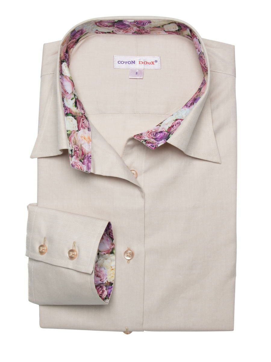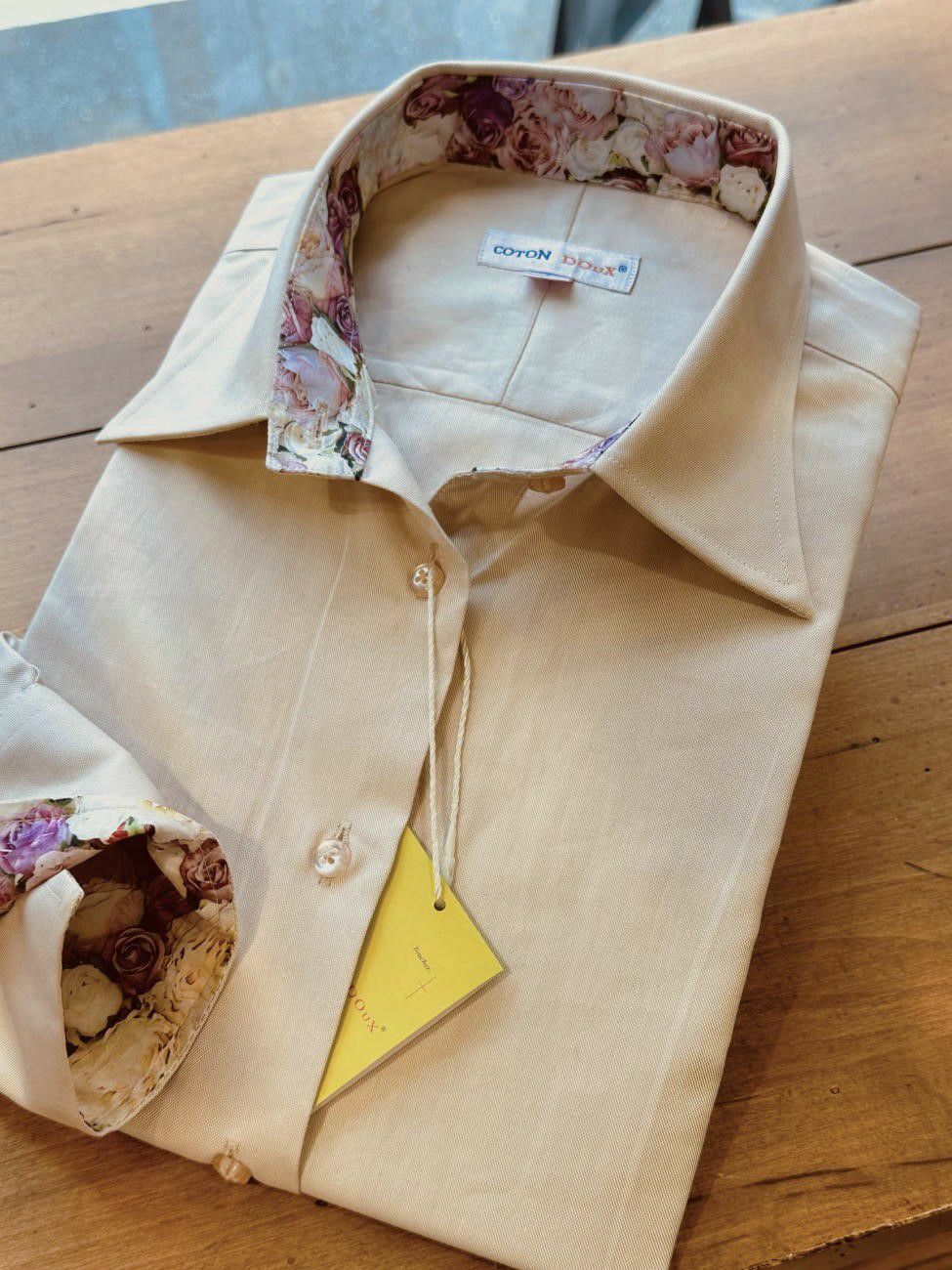 レディース シャツ 長袖 無地 エジプト綿 コットン100% 裏地プリント デザインシャツ カジュアル ブラウス ベージュ l42td2206