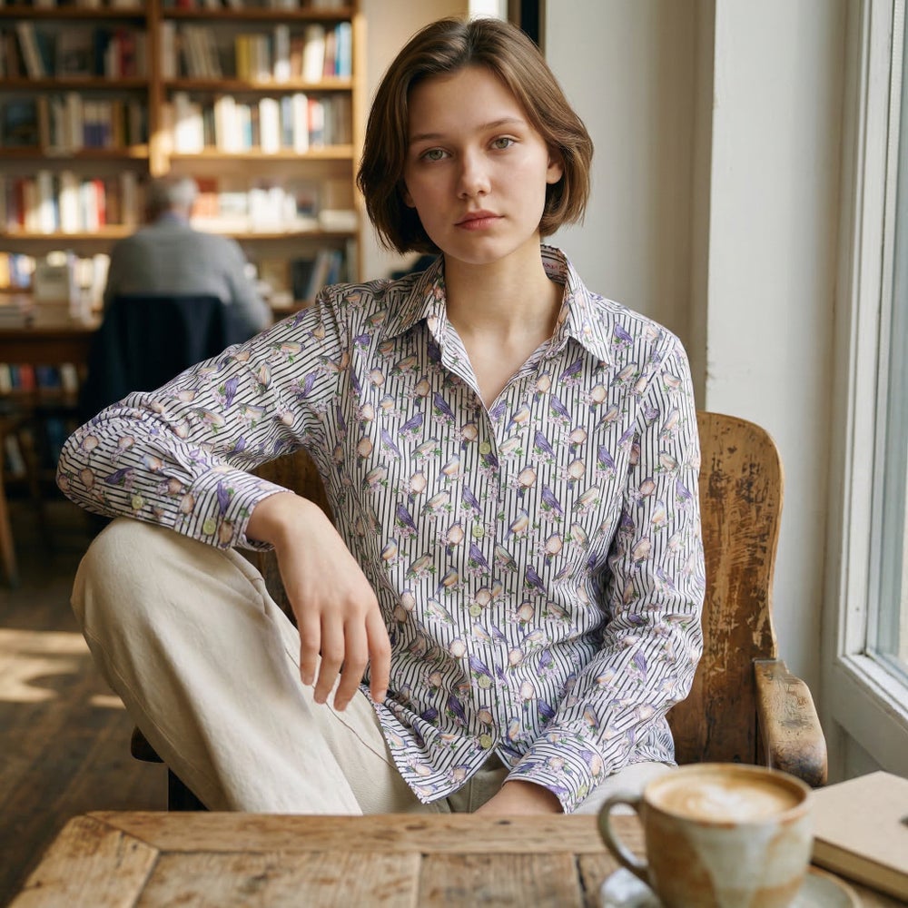 シャツ レディース 柄シャツ 長袖 花柄 鳥柄 ストライプ ボタニカル プリント デザインシャツ カジュアルシャツ l32ad2531