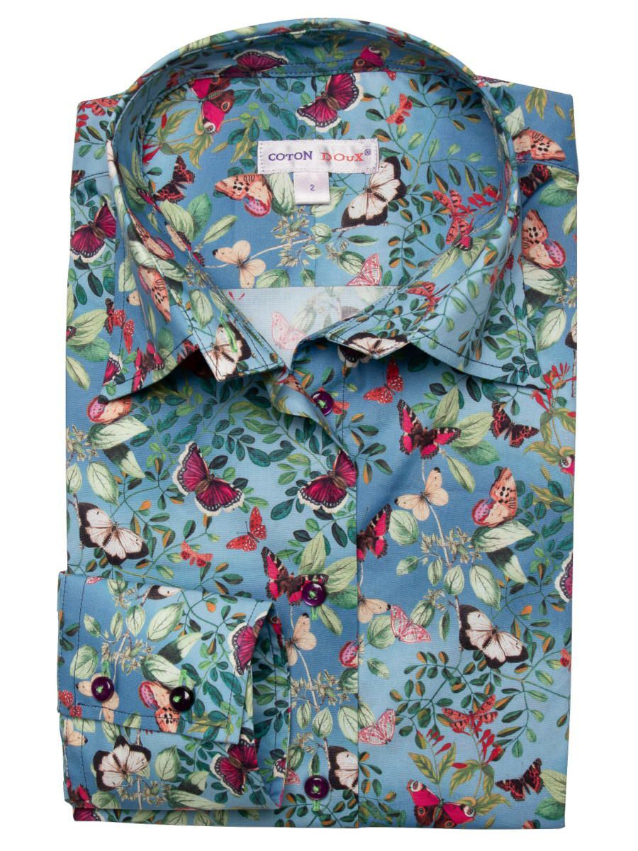 レディース シャツ 長袖 花柄 蝶柄 柄シャツ プリント デザインシャツ カジュアルシャツ ブラウス 蝶 l42ad2761