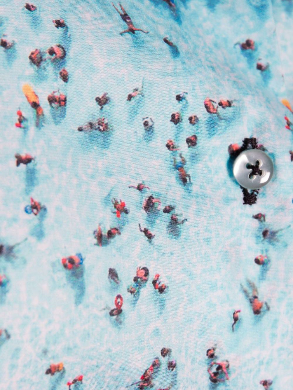 レディース シャツ 柄シャツ メンズ 長袖 ブラウス フランス カジュアルシャツ デザインシャツ ブルー 水色 プール l51ad2858