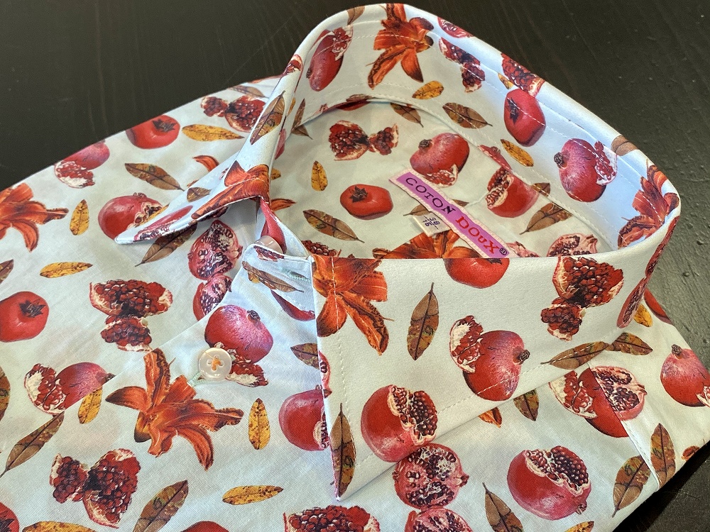 アーティスティックな生地デザインだけではなく、ボタンの色形・糸色・襟袖のデザインなど、 ”魅せるディテール“にこだわって、身体のラインを美しく見せることに追求した、上品なフレンチシルエットのシャツです。