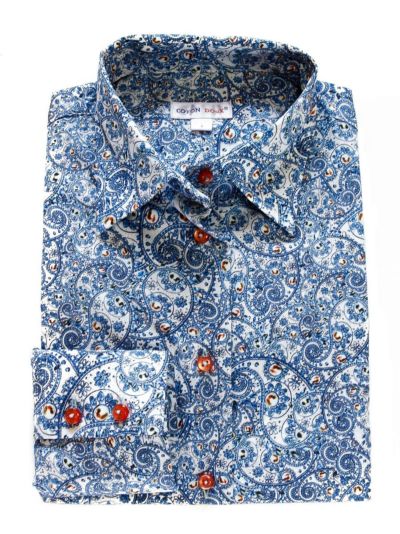 レディース シャツ 婦人 柄シャツ ブラウス 花柄 ペイズリー レトロ柄 ブルーシャツ エレガント l12ad2133paisleyのレビュー