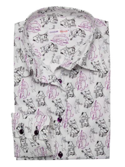 可愛いネコちゃんの柄が気に入りました。 ギターを弾いている模様が良いですね。ボタンのお色も綺麗です。 着るのが楽しみです。