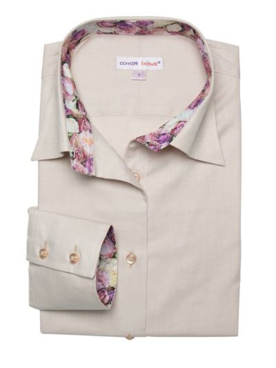 レディース シャツ 長袖 無地 エジプト綿 コットン100% 裏地プリント デザインシャツ カジュアル ブラウス ベージュ l42td2206のレビュー