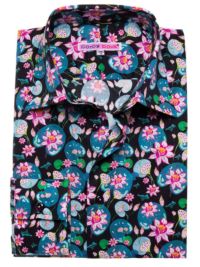 以前、デパートで購入してとても気に入ったので(夫用です)、ネットで探してもう1枚同じものを購入しました。鮮やかな発色で面白いデザイン、楽しい気分になります。1年前の年末に、他のデザインと合わせて5着購入し、この1年間ほとんどここのシャツしか着ていません。お店のかたも親切で丁寧、おまけで入れて下さったトランクスも可愛かったです。ありがとうございます!