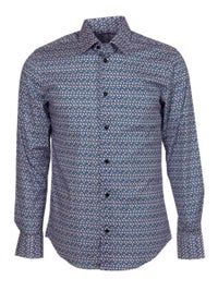 遊び心が一糸乱れず整列しています。全体的には上品な色味と柄、よーく見るとアメ車の大群。 「これ、なに?」「え、クルマなん」という会話だけで楽しいシチュエーションを作ってくれるシャツです。