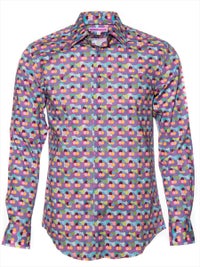 芸術作品のようなシャツ。実際にはありえない街並みの風景を無数の建物と木々で構成し、見る者は自然にヨーロッパの街並みをイメージできる。そのデザイン力には脱帽です。 ひとつひとつの建物や植物の色や形状も緻密で素敵なのですが、全体をパッと遠目からみた時も、1枚のシャツとして完成されたデザインになっているところがまた凄いところだと思います。さすがです。
