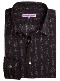 ぱっと見は何の柄か分からないのですが分かると面白がってくれる人が多いシャツです。黒と白なのであわせやすいのも気に入ってます。