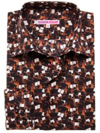 ドア、窓、街並み。コトンドゥさんには良く出てくるデザインですが、この「ランタン」は初めてでは? 「これぞ柄シャツ的」な振り切り方が潔いですね。全面に敷き詰められたランタンの灯たち。よく見ると一つひとつのガラスのデザインが細かく細かく描かれていて、よくもまあこんな生地ができるもんだと感心してしまいます。見方によっては派手なシャツなんでしょうが、同時にレトロな感じがとってもオシャレ。静かなバーのカウンターが似合いそうです。 -