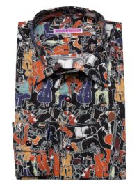 遠くから見ても近くから見ても楽しくて、とても素敵なシャツです オレンジっぽい茶色と黄色っぽい茶色のコントラバスの楽器が粋で、 秋のお出かけにピッタリで、今すぐに、このシャツで外出したい気持ちです いつもセンスの良いシャツを有難う御座います! -